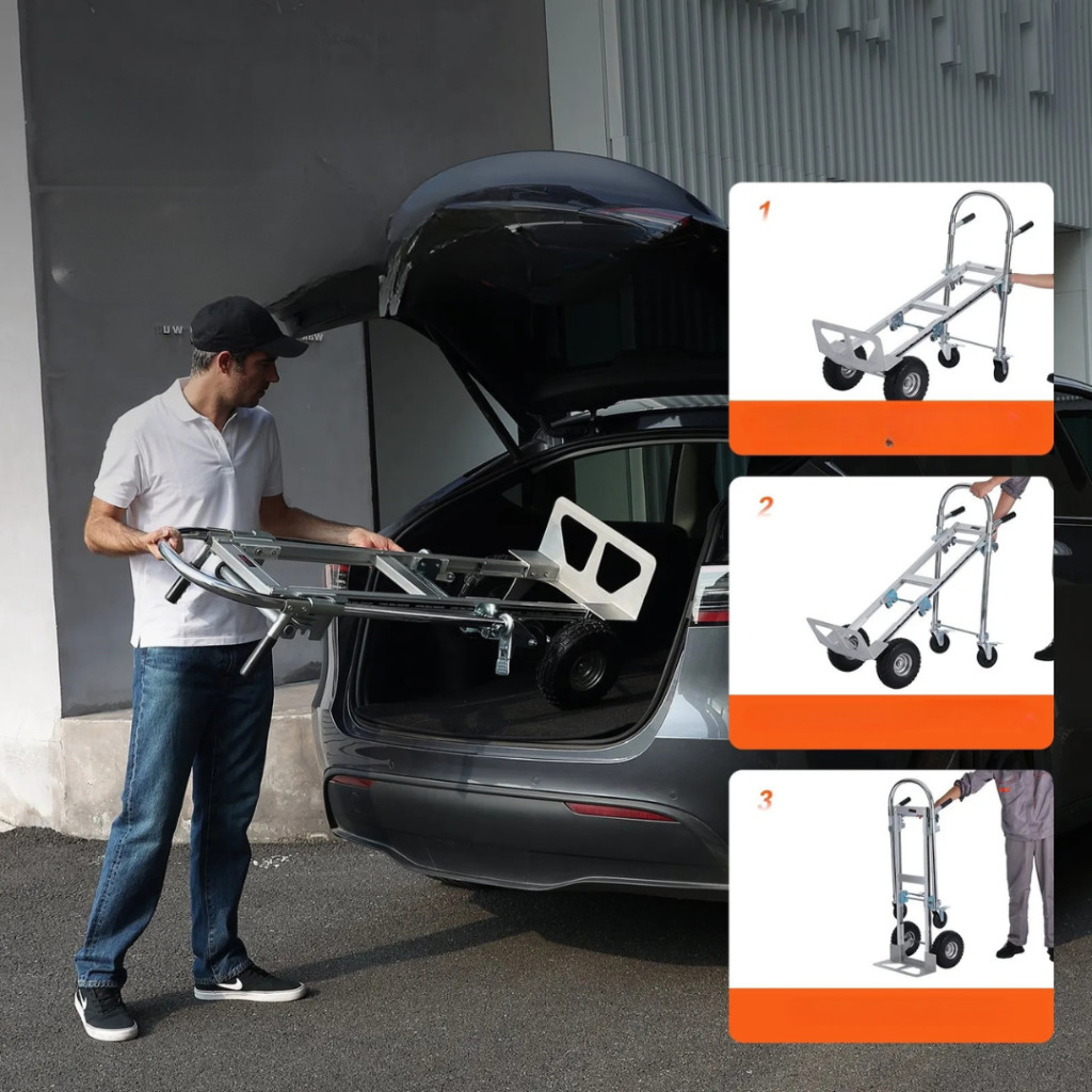 2 az 1-ben összecsukható molnárkocsi 318/454 kg teherbírás, alumínium-szénacél vázas kézikocsi