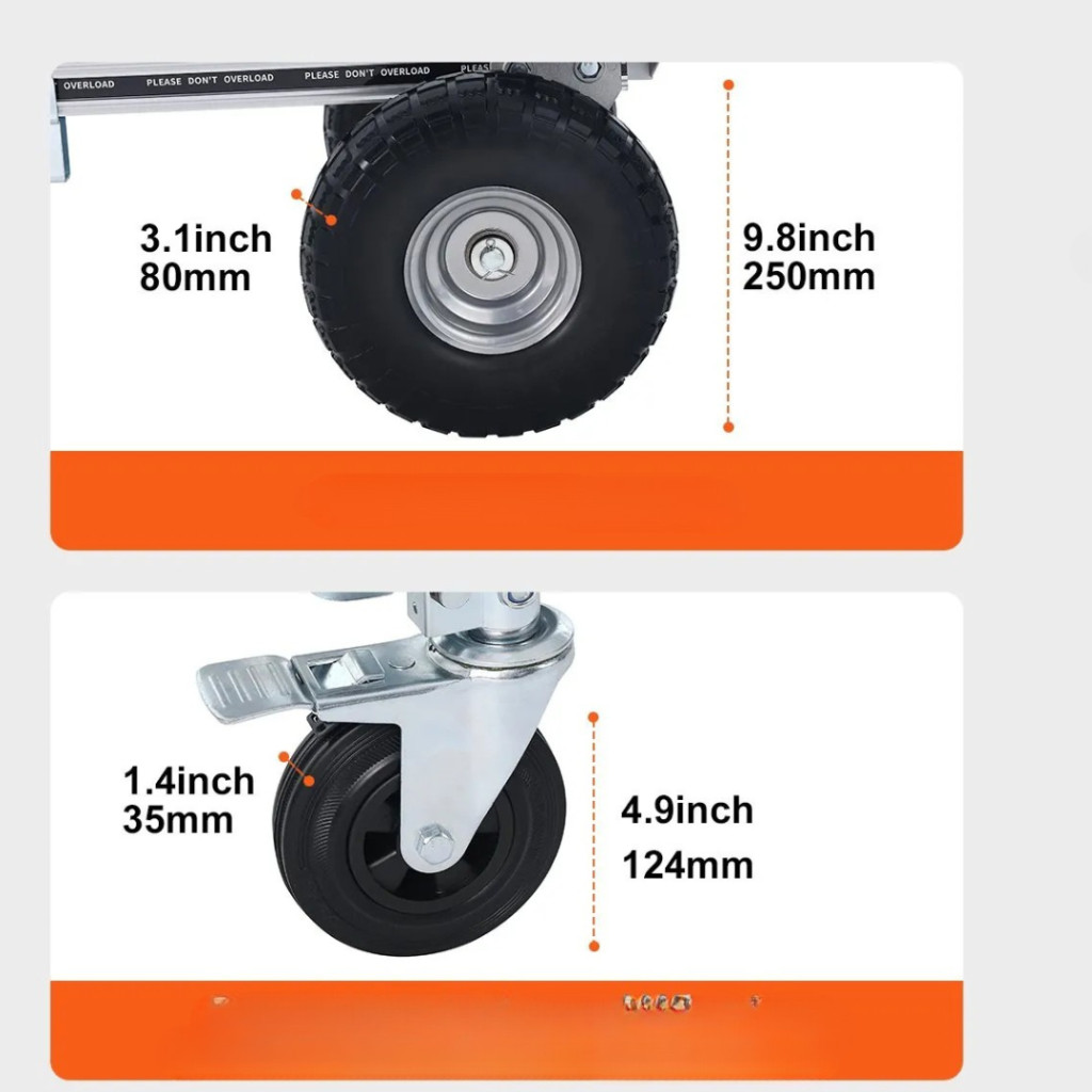 A 2 az 1-ben molnárkocsi tökéletes választás minden szállítási és rakodási feladathoz. A masszív alumíniumötvözet és szénacél keret biztosítja a könnyű kezelhetőséget és a maximális stabilitást. Kézikocsi módban 318 kg-ig, platformkocsi módban pedig 454 kg-ig terhelhető, így akár otthoni, akár ipari környezetben megbízható társ.