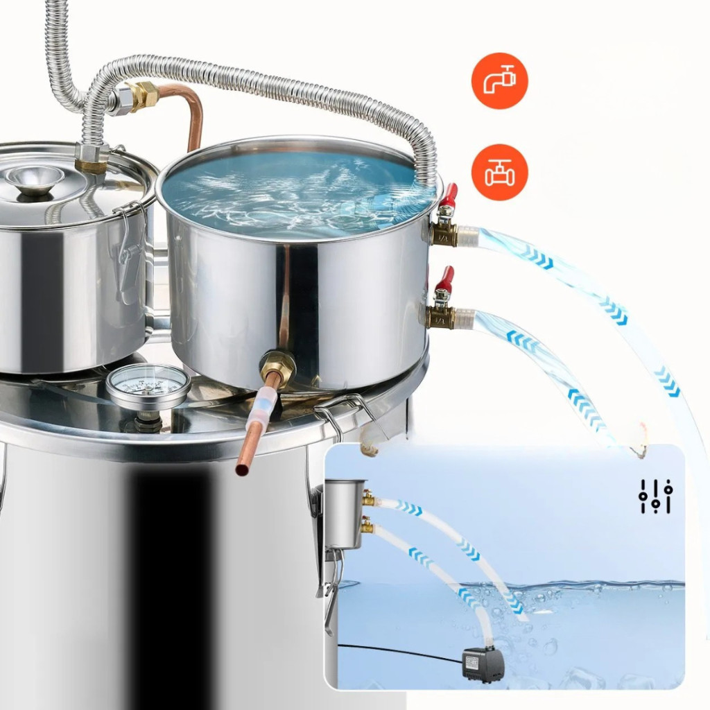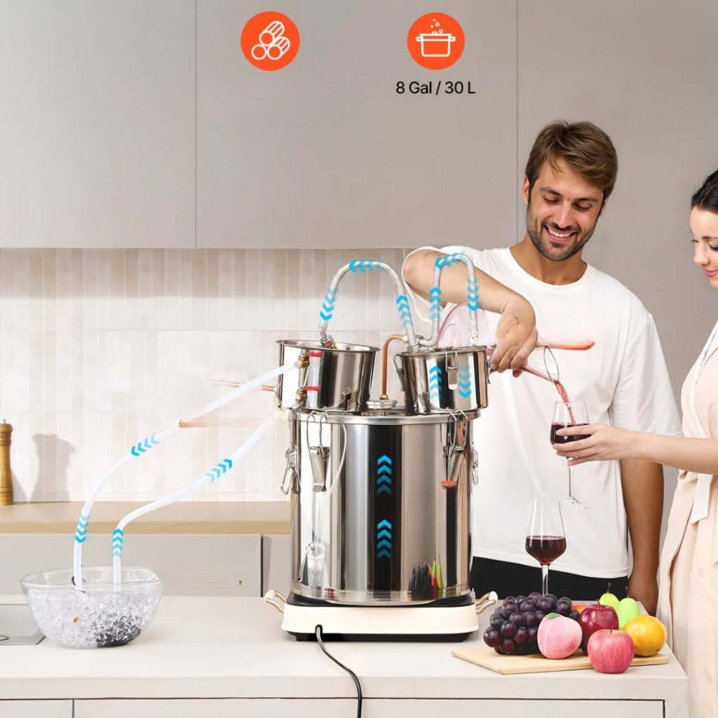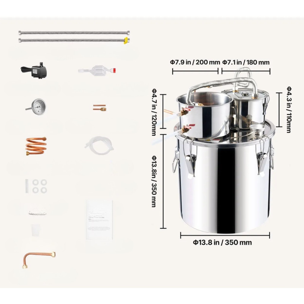 Ha szeretné otthon professzionális minőségben elkészíteni saját párlatait, ez a 30 literes rozsdamentes acél lepárlókészülék minden szükséges eszközt biztosít a tökéletes eredményhez. A készülék rézspirálos hűtőrendszerrel, dupla kondenzátorral, valamint másodlagos (thumper) desztillációs egységgel rendelkezik, amely még tisztább, aromásabb és magasabb minőségű végterméket eredményez.