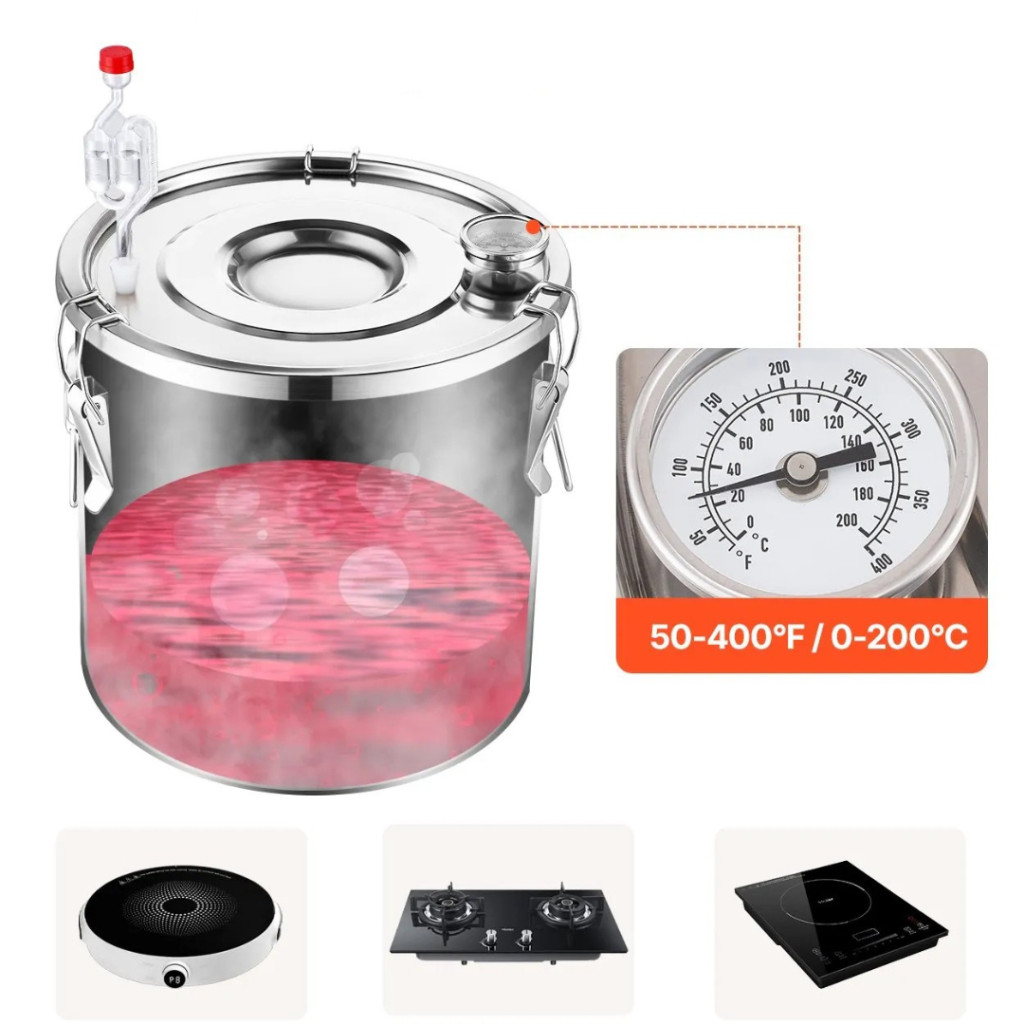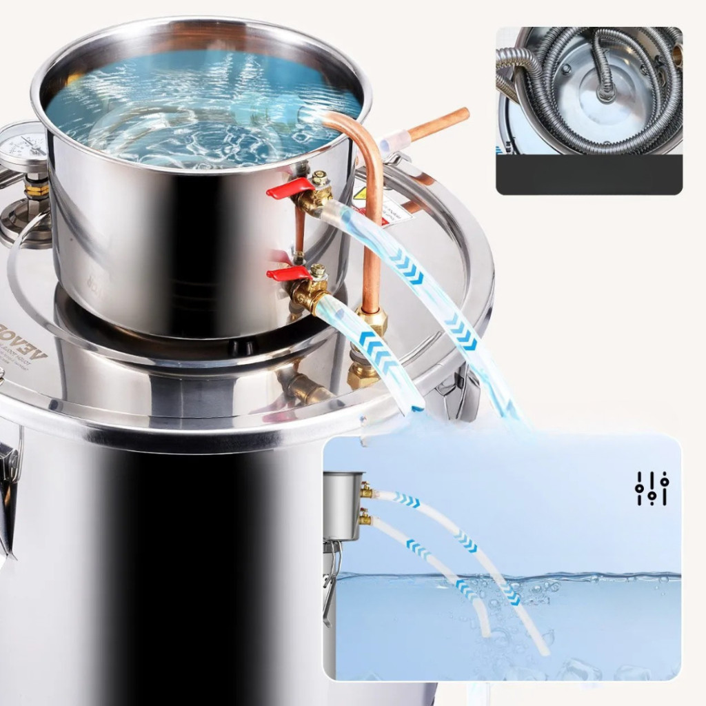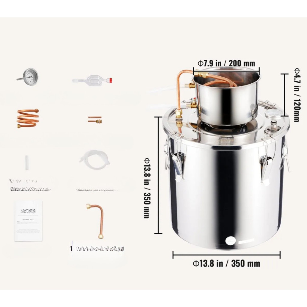 A 30 literes rozsdamentes acél alkohollepárló készülék ideális választás mindazok számára, akik otthon szeretnének kiváló minőségű párlatokat, whisky-t, pálinkát, rumot vagy akár desztillált vizet készíteni. A készülék minden eleme élelmiszeripari minőségű rozsdamentes acélból (SUS201), szilikonból és vörösrézből készül, így biztosítja a higiénikus és biztonságos lepárlási folyamatot.