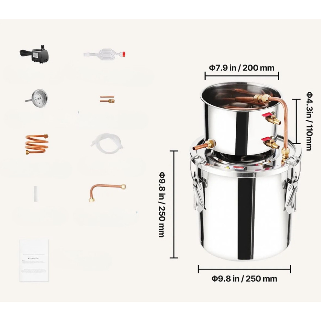 Alkohol lepárló 11,4 L rozsdamentes acél pálinkafőző réz hűtőspirállal otthoni párlatkészítéshez