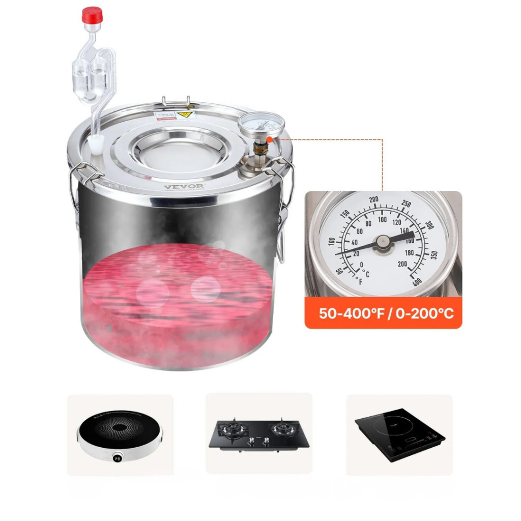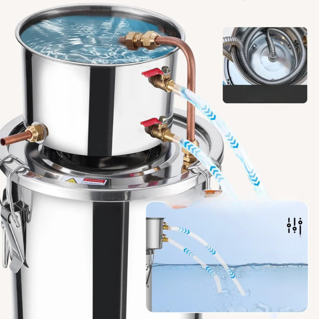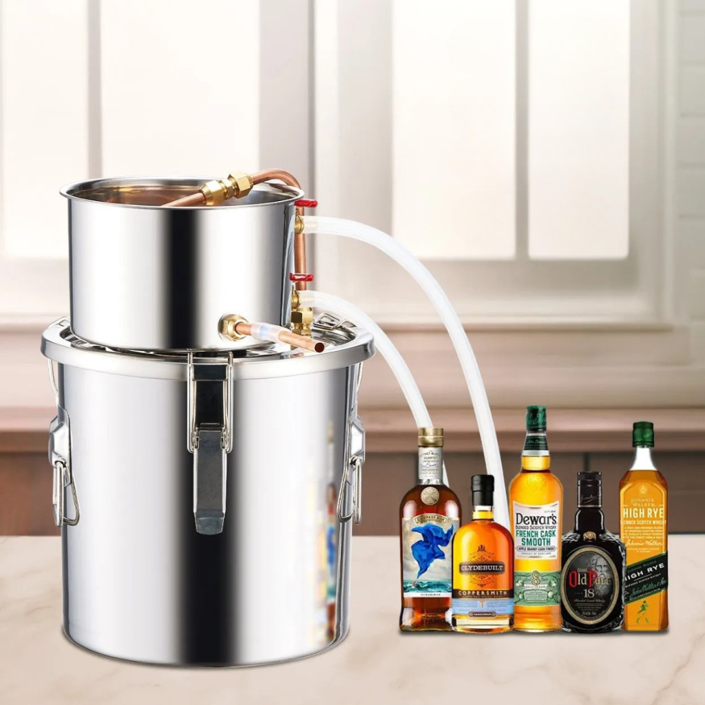 A 11,4 literes rozsdamentes acél alkohollepárló készülék ideális választás mindenkinek, aki otthoni környezetben szeretne minőségi párlatokat, whisky-t, rumot, pálinkát, vodkát vagy desztillált vizet előállítani. A készülék minden eleme élelmiszeripari minőségű rozsdamentes acélból, szilikonból és vörösrézből készül, így az alapanyagok minden ponton biztonságos, tiszta környezetben érintkeznek a berendezéssel.