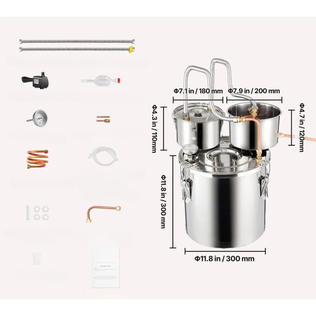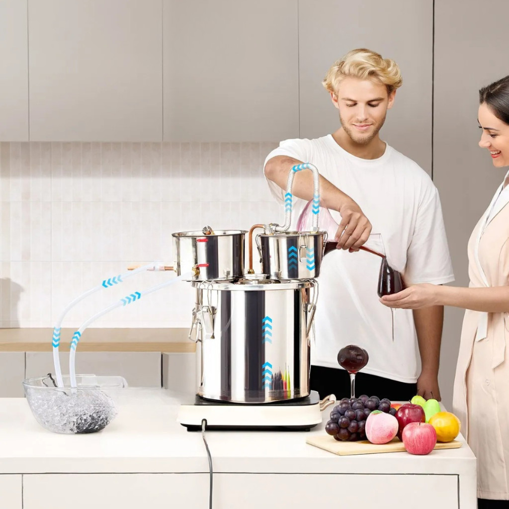 A professzionális otthoni lepárlás élménye most bárki számára elérhető ezzel a 19 literes alkohollepárló berendezéssel, amely élelmiszeripari minőségű rozsdamentes acélból és kiváló hővezetésű vörösrézből készült. A készülék tökéletes a saját készítésű pálinka, whisky, brandy, rum, vodka, gyümölcsbor, etanol, desztillált víz vagy éppen illóolajelőállítására.