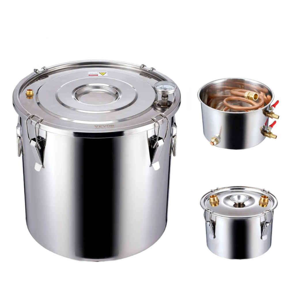 A mellékelt thumper tartály a professzionális desztillálóberendezések egyik kulcseleme.