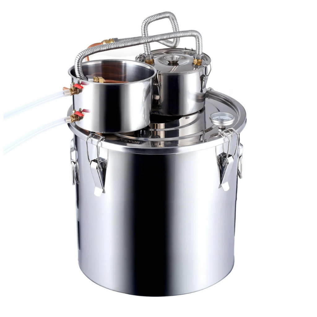 Alkohol lepárló 50 L rozsdamentes acél pálinkafőző készülék dupla kondenzátorral, rézspirállal, thumper tartállyal