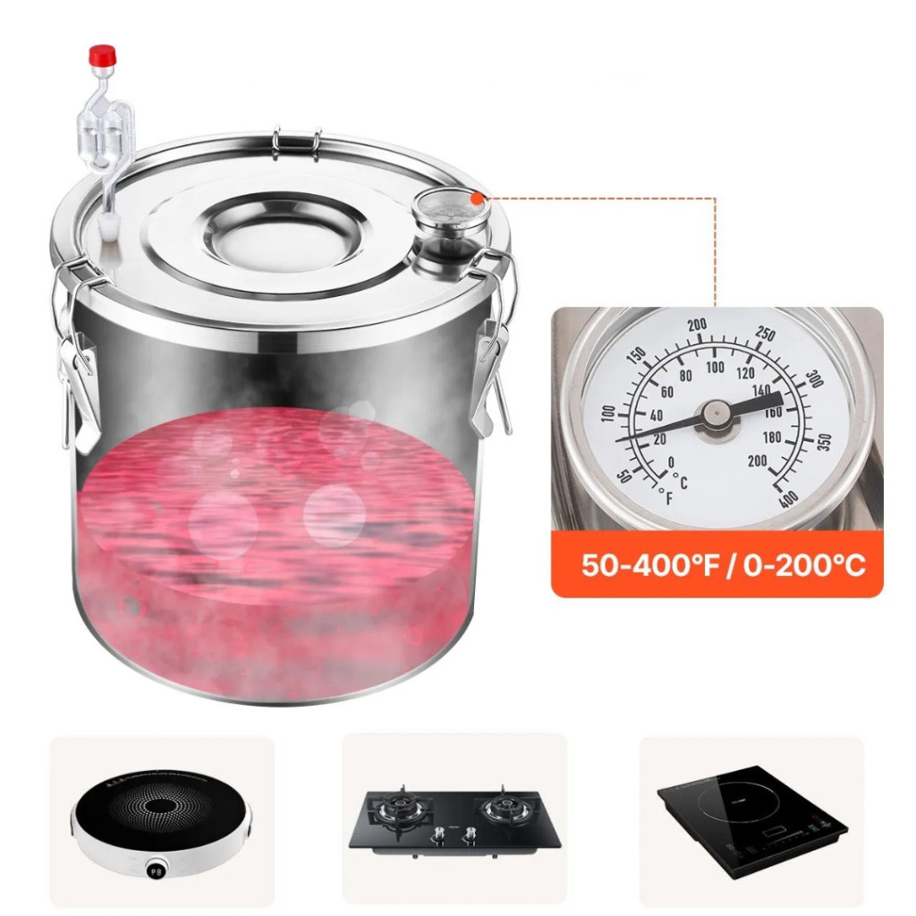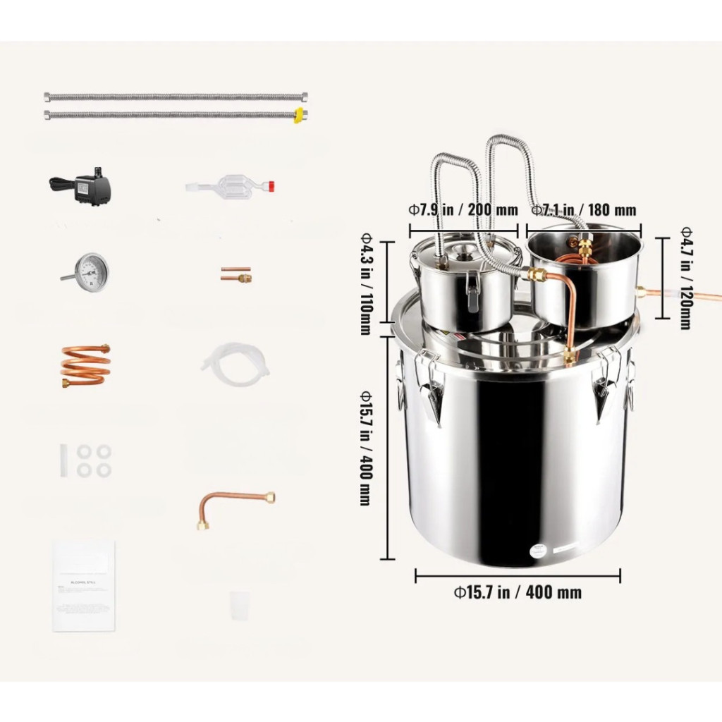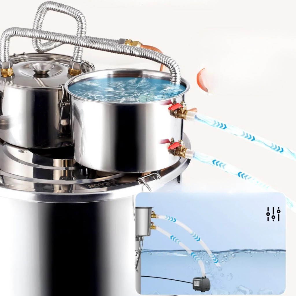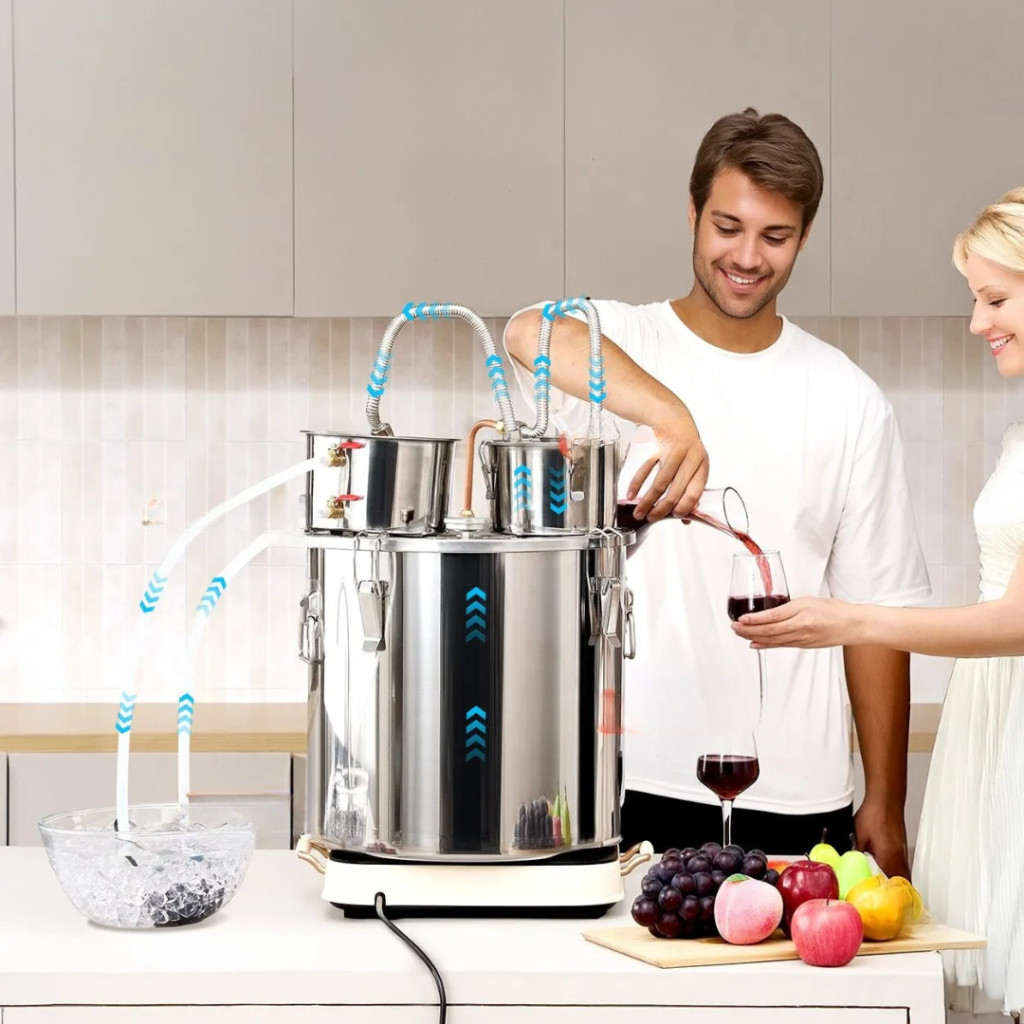 A 50 literes, professzionális lepárlókészülék ideális választás mindenkinek, aki otthon szeretne kiváló minőségű párlatot, whiskyt, brandy-t, gyümölcsbort, vodkát, etanolt, desztillált vizet vagy illóolajat készíteni. A nagy kapacitásnak és a dupla kondenzátoros kialakításnak köszönhetően ez a modell nagyobb mennyiségű alapanyag feldolgozására is alkalmas, miközben tisztább, gazdagabb aromájú végeredményt biztosít.