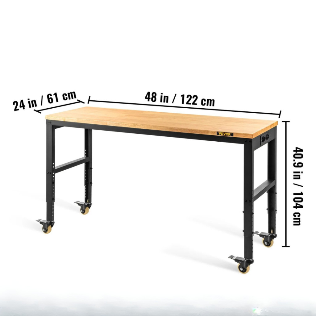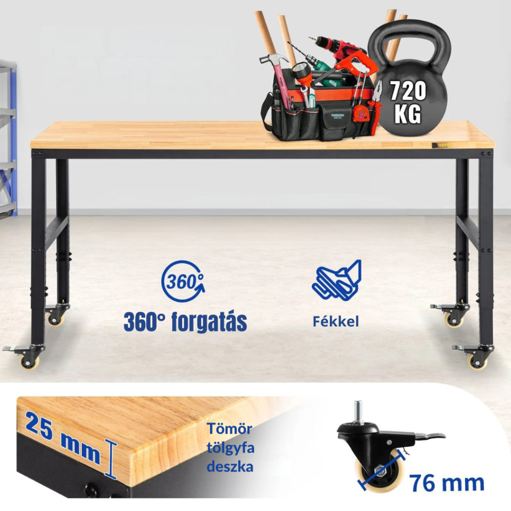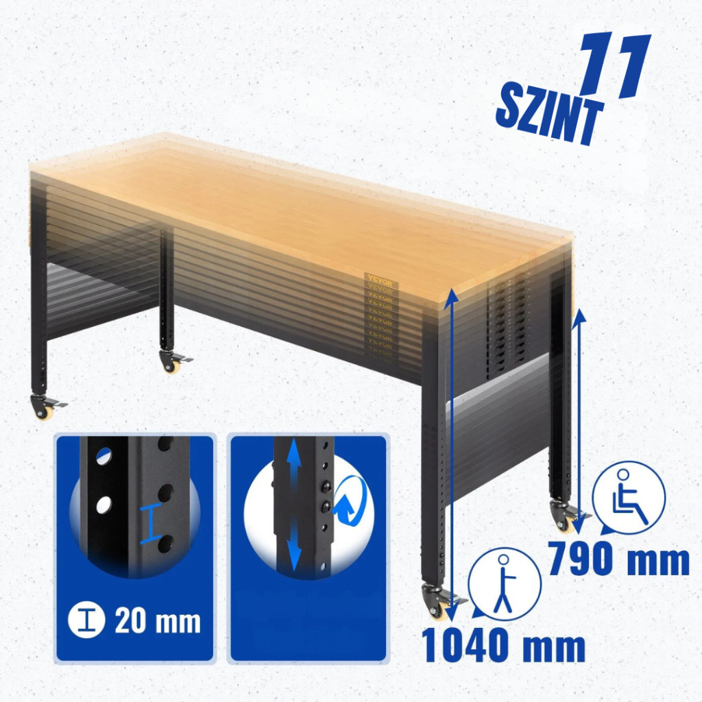 Állítható magasságú munkaasztal 122x61x79-104 cm 720 kg teherbírású barna munkapad multifunkciós asztal műhelybe