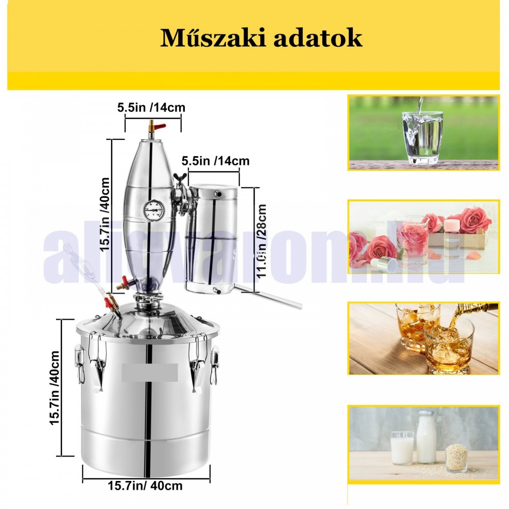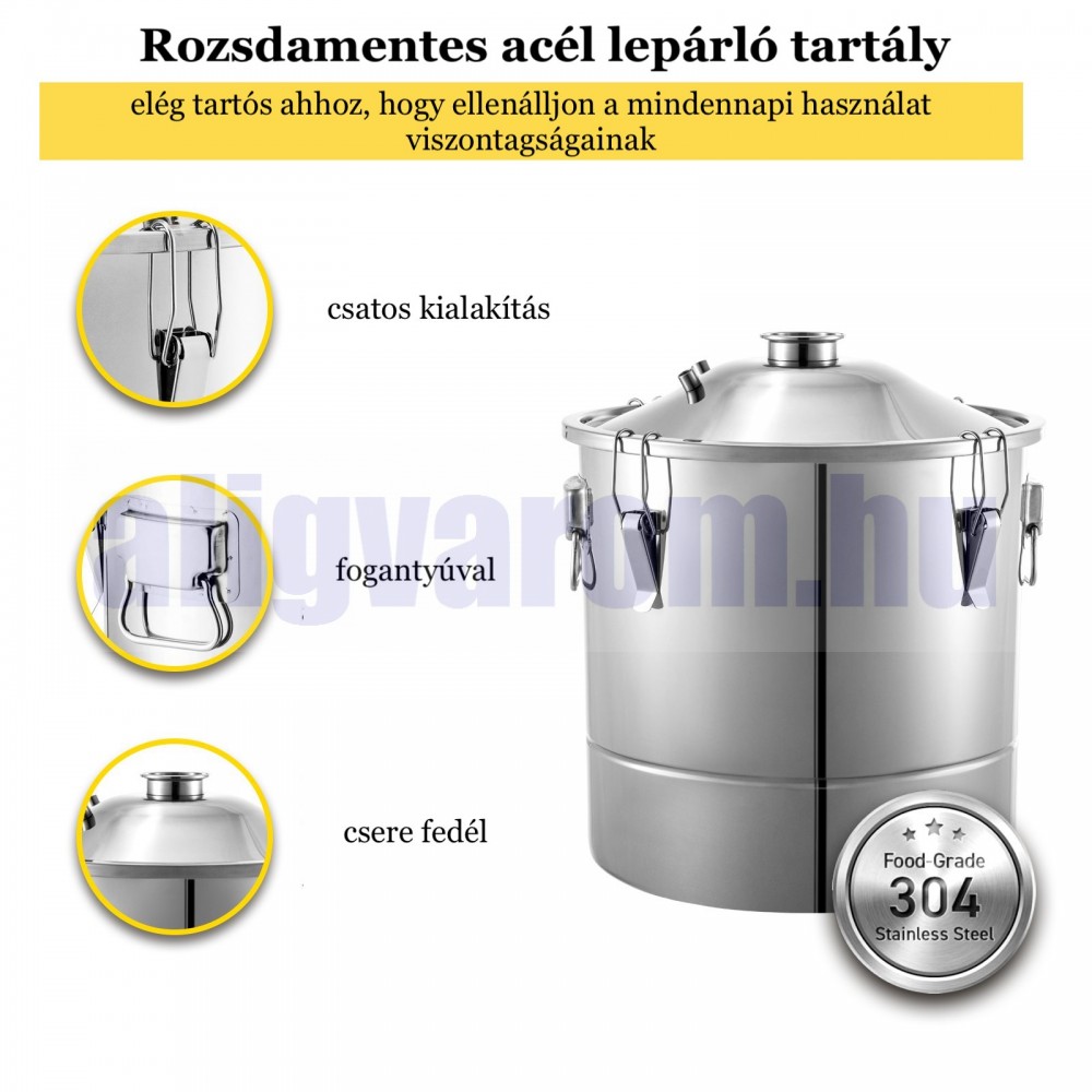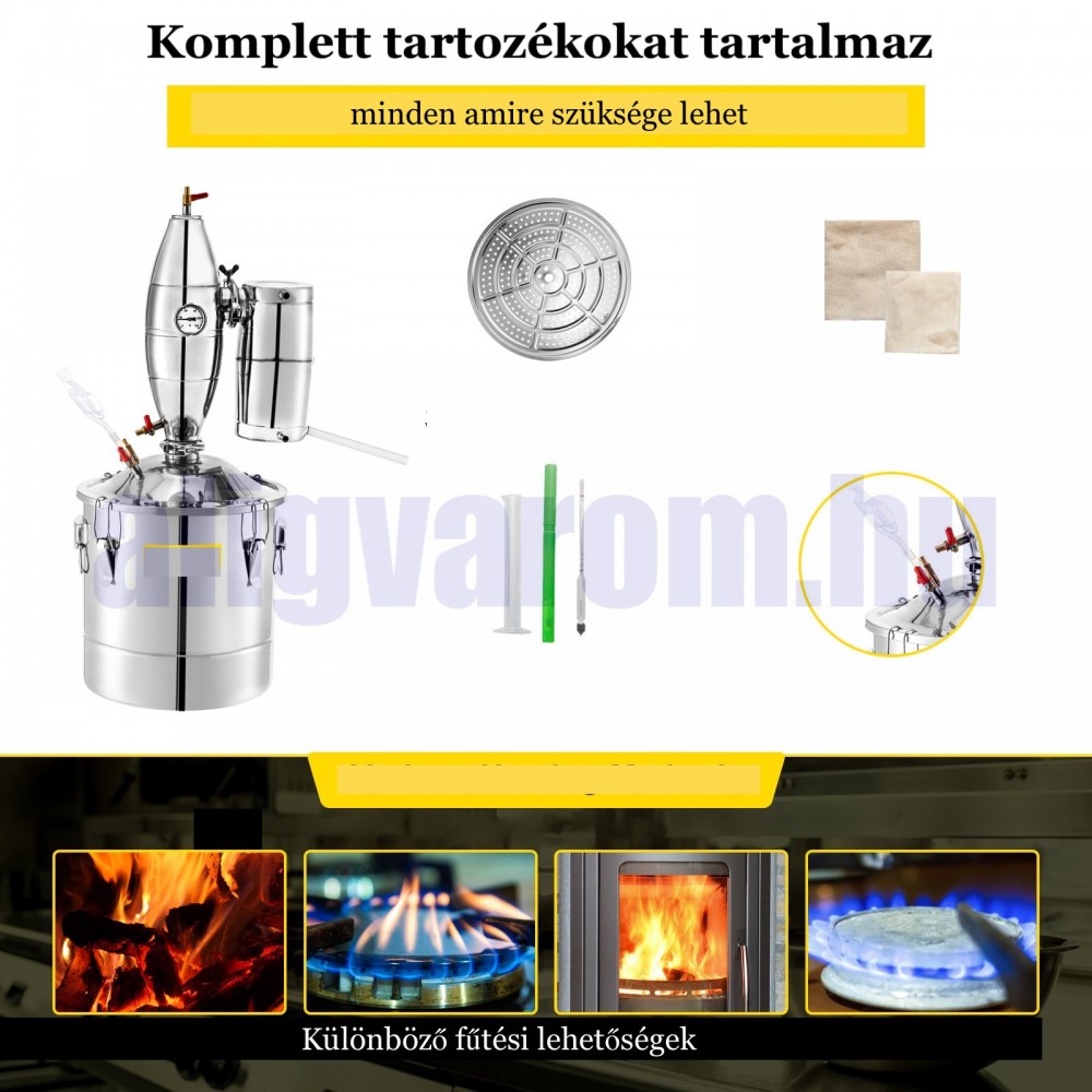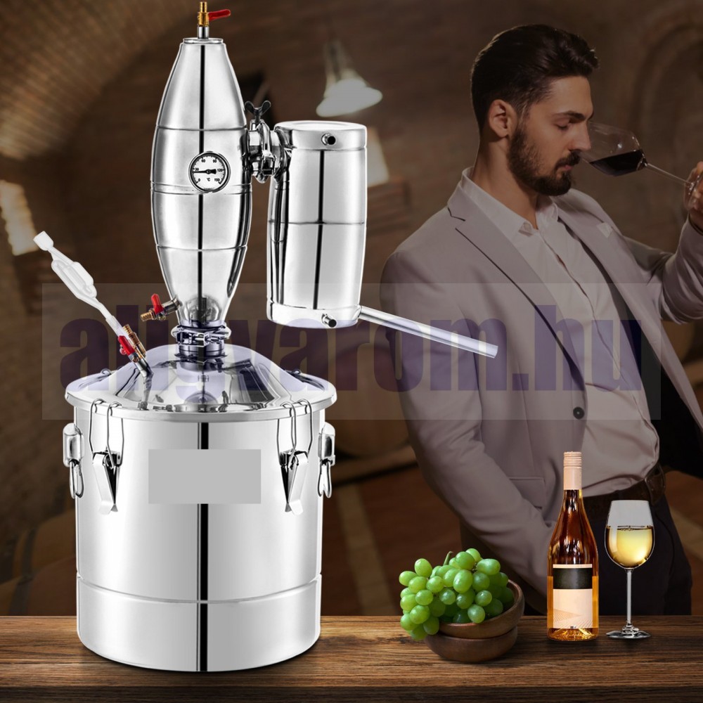 FOKMÉRŐ NÉLKÜL! Lepárló 50 literes alkohol desztilláló aromatornyos pálinkafőző rozsdamentes acél alkohol lepárló tartály