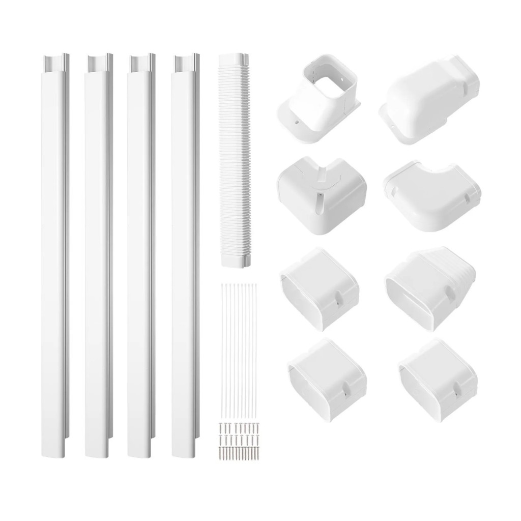 Mini split klíma kábelcsatorna készlet 76 mm, 5350 mm hosszú PVC csővezeték burkolat klímához/hőszivattyúhoz fehér