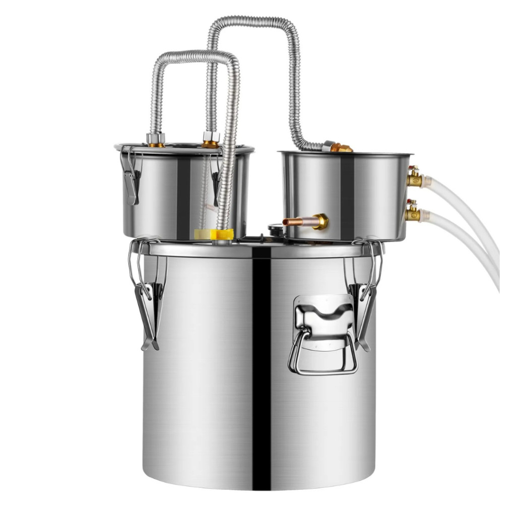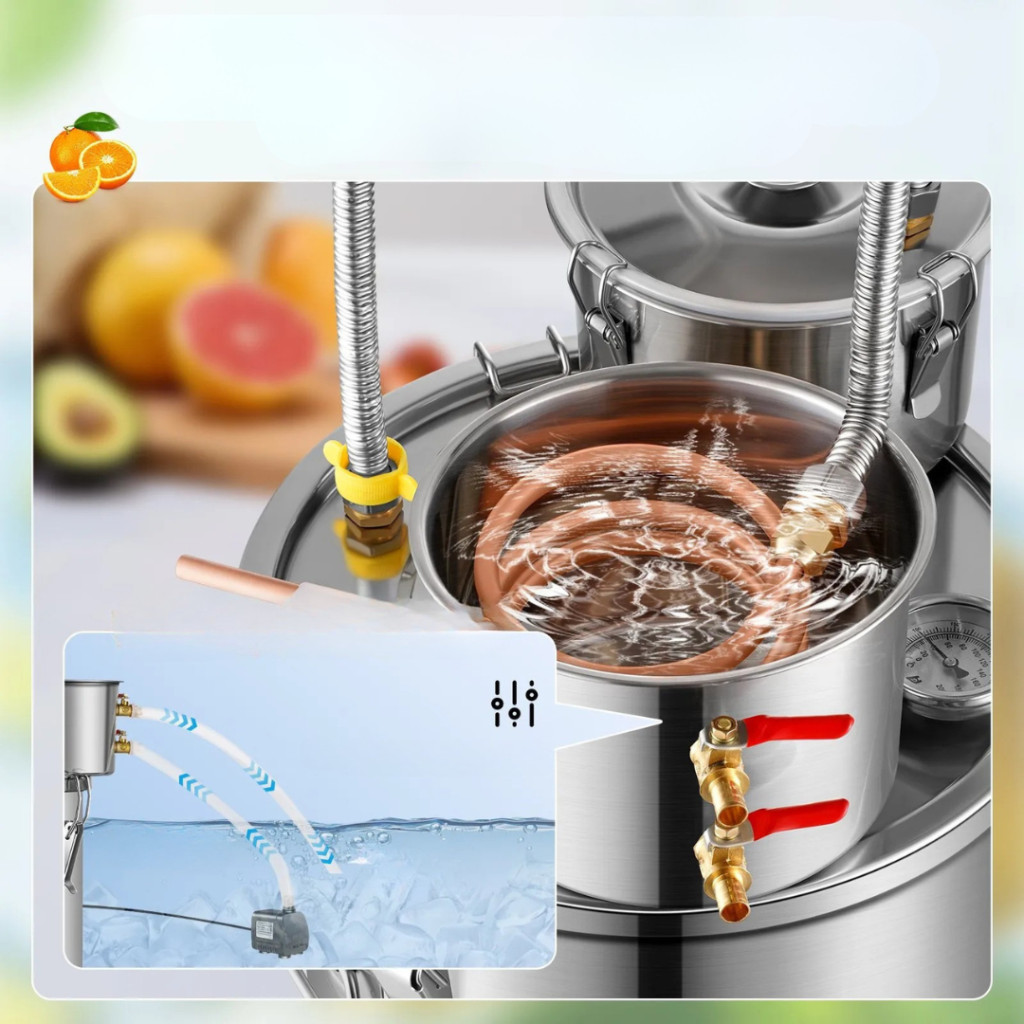 Alkohol lepárló 50 literes rozsdamentes acél lepárlókészülék dupla kondenzátoros rendszerrel másodlagos desztillációval
