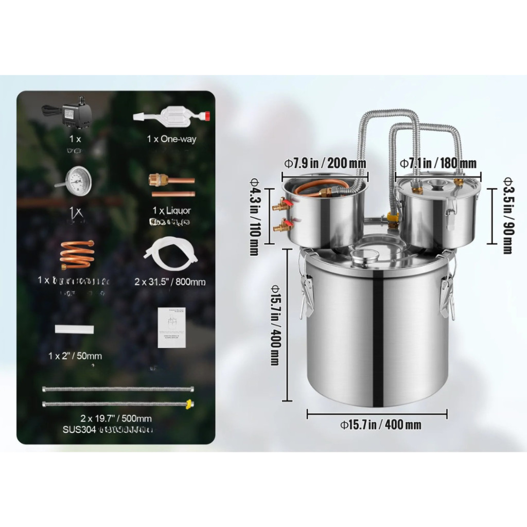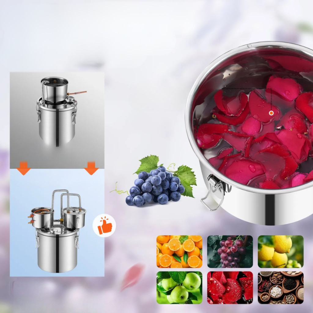 A házi párlatkészítés mindig is különleges élmény volt – most azonban professzionális szintre emelheti a folyamatot ezzel a 50 literes lepárlókészülékkel, amely kifejezetten a tiszta, aromás és magas minőségű párlatok előállítására készült. A készülék dupla kondenzátoros hűtőrendszert, másodlagos desztillációt biztosító thumper tartályt, valamint biztonságos, élelmiszeripari minőségű rozsdamentes acél kialakítást kapott.