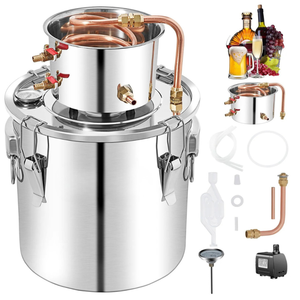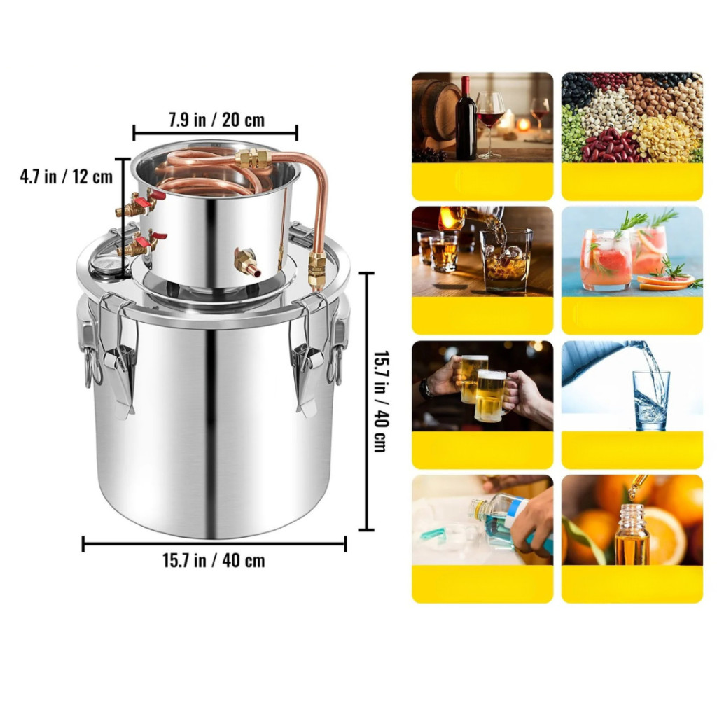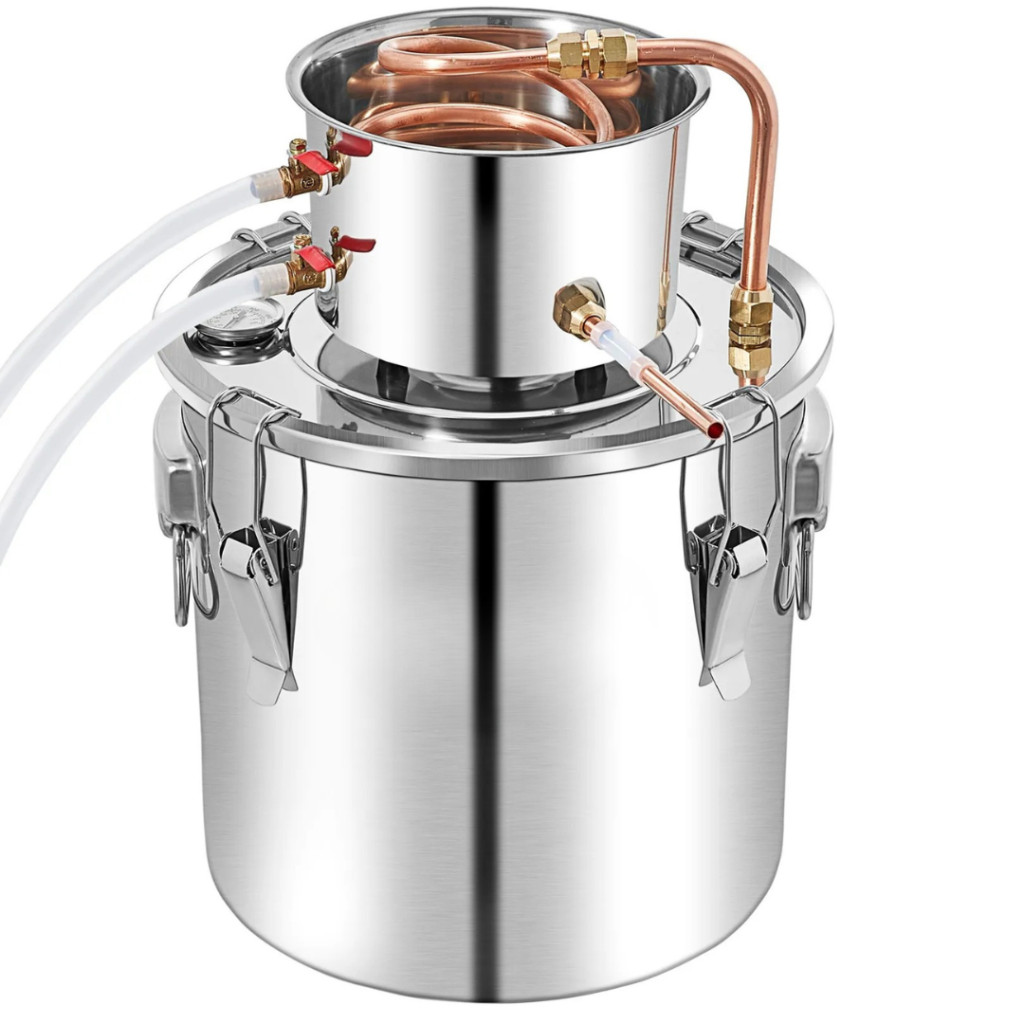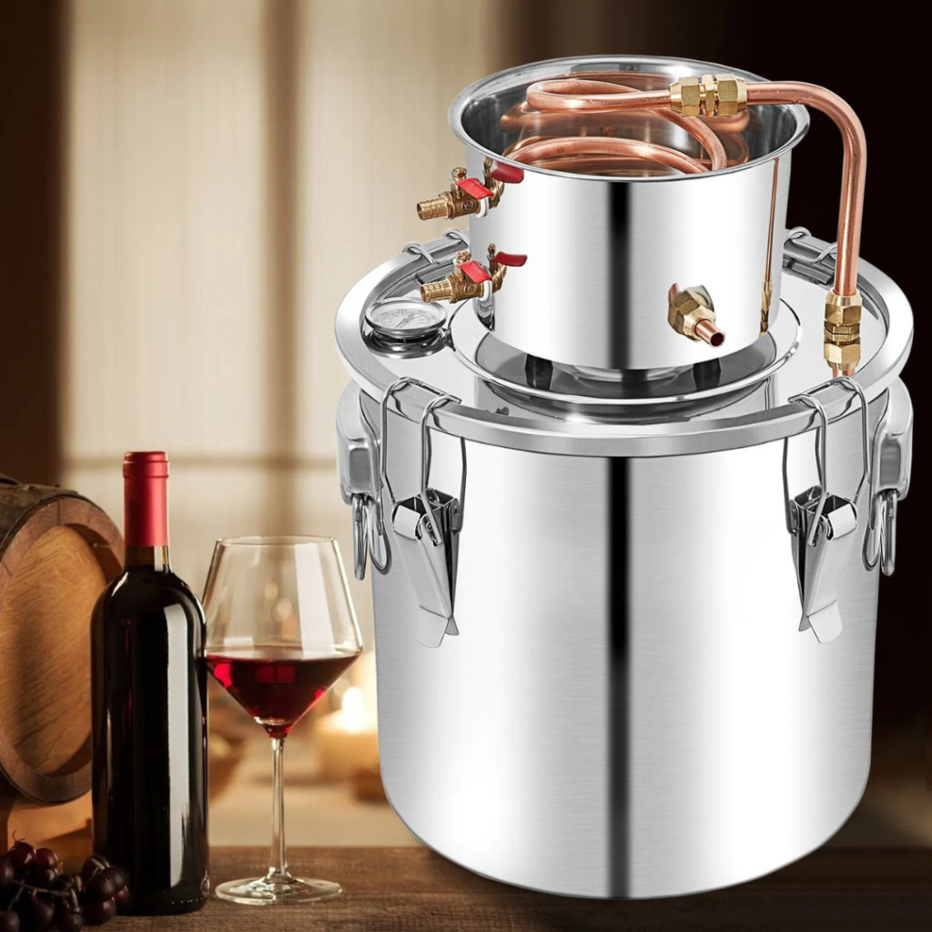 Alkohol lepárló 50 literes alkohol desztilláló berendezés rozsdamentes acél, nagy kapacitású pálinkafőző, erős hűtőspirállal