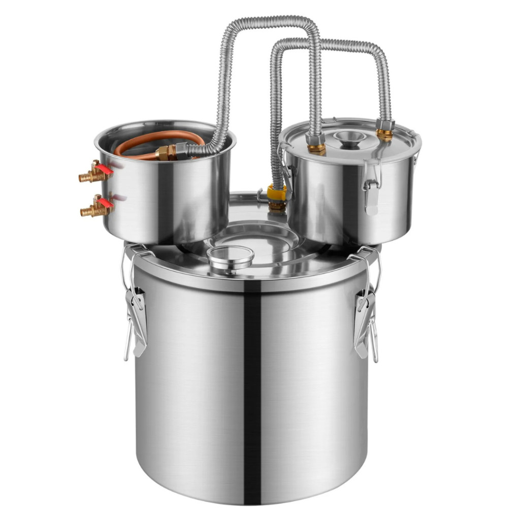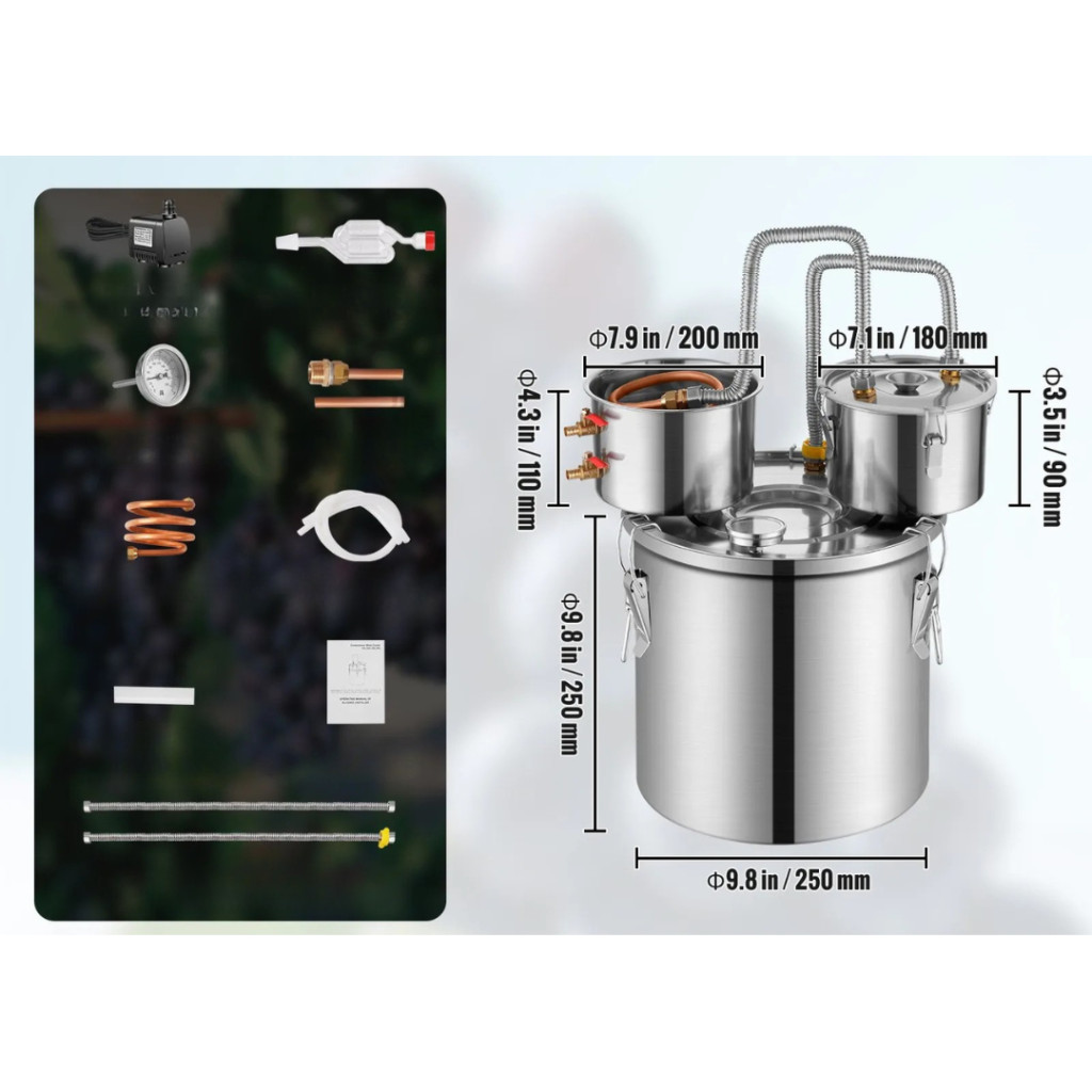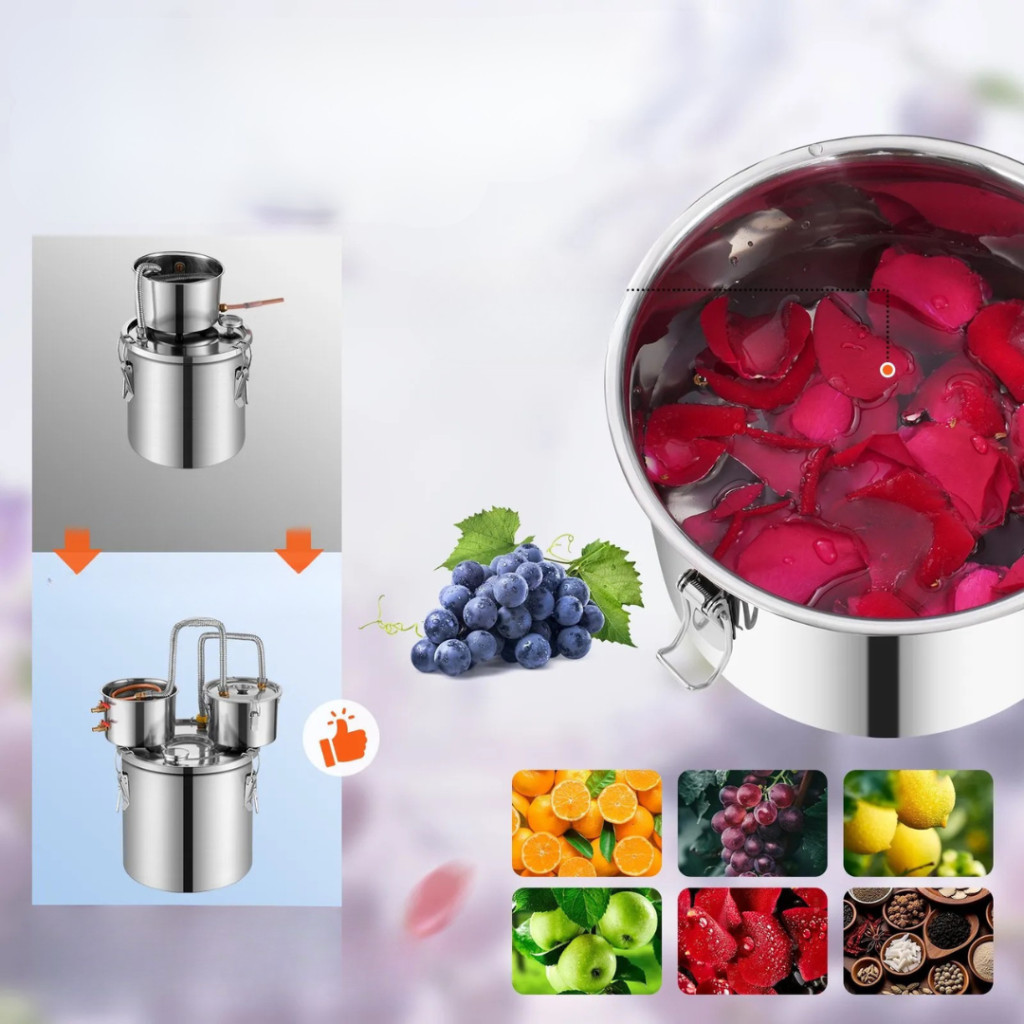 Alkohol lepárló 11,4 literes rozsdamentes acél pálinkafőző dupla kondenzátorral, másodlagos desztillációval