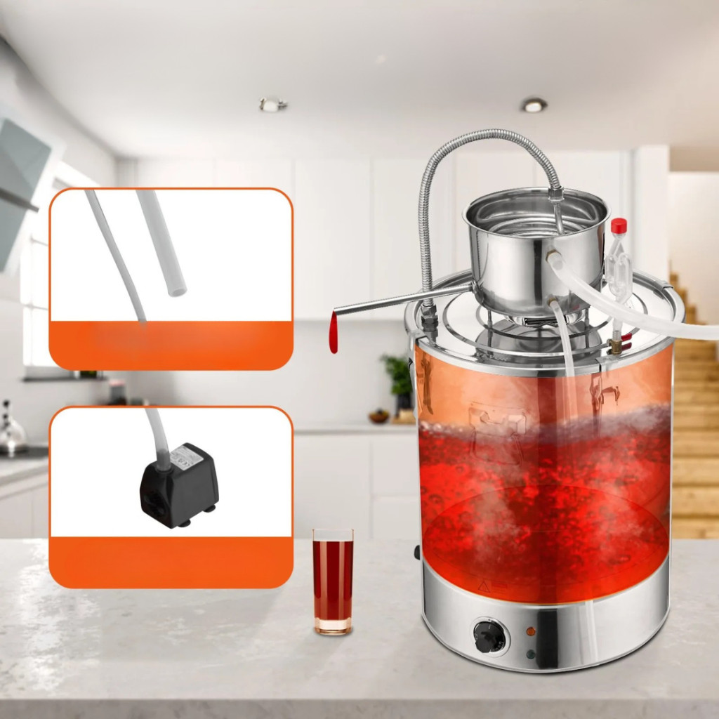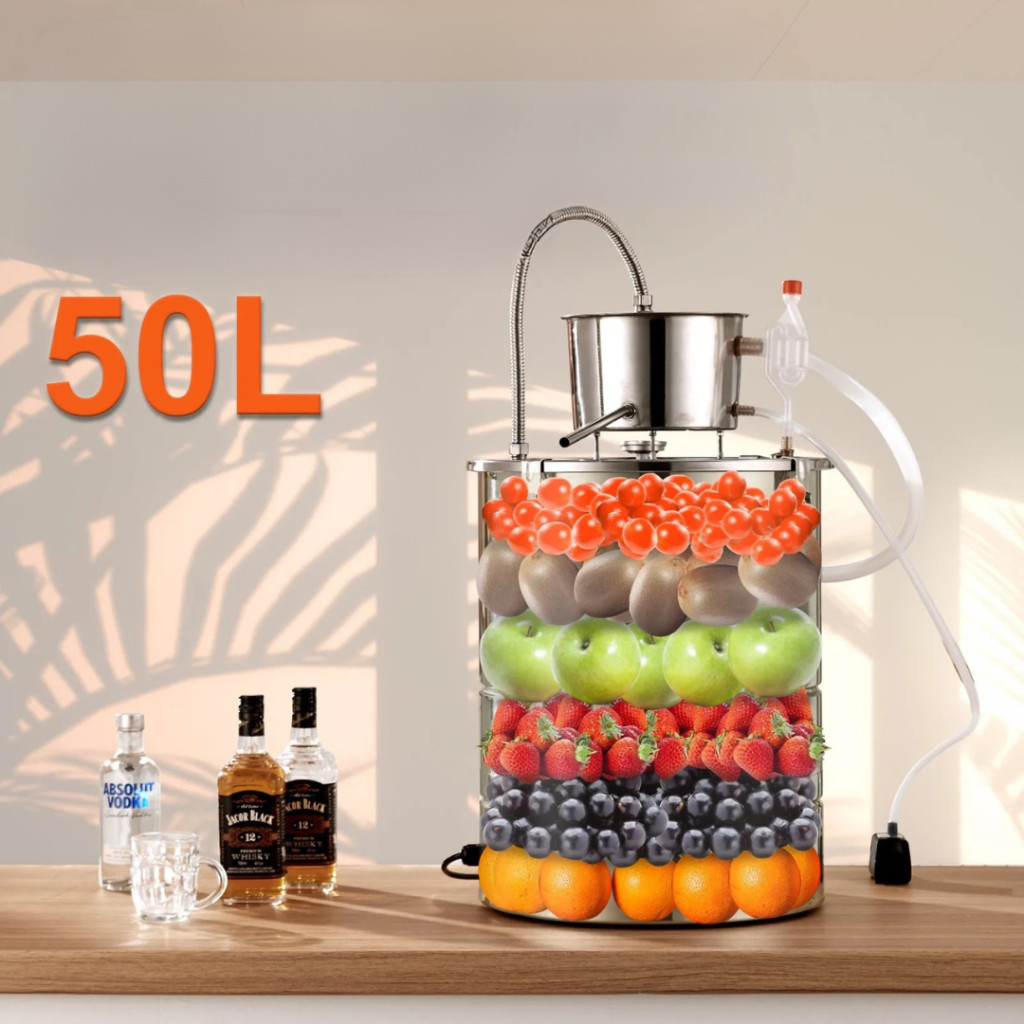 Hozza ki a legtöbbet otthoni lepárlásából ezzel a prémium minőségű, 50 literes alkohol desztilláló készülékkel, amely nagy teljesítményének és korszerű kialakításának köszönhetően gyors, biztonságos és kiemelkedően hatékony működést biztosít. Legyen szó gyümölcsbor, whisky, pálinka, vodka, pezsgő, szesz, desztillált víz vagy akár illóolaj készítéséről, ez a berendezés minden alkalommal kiváló eredményt nyújt.