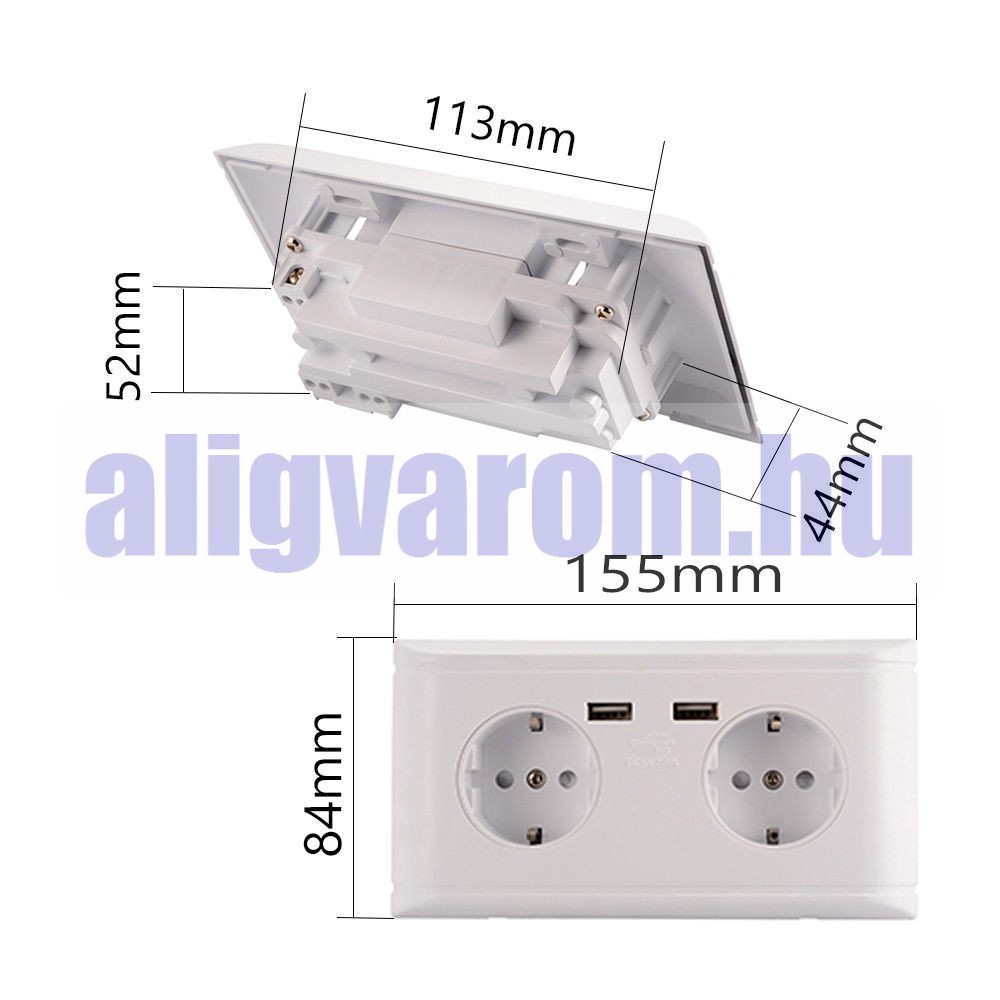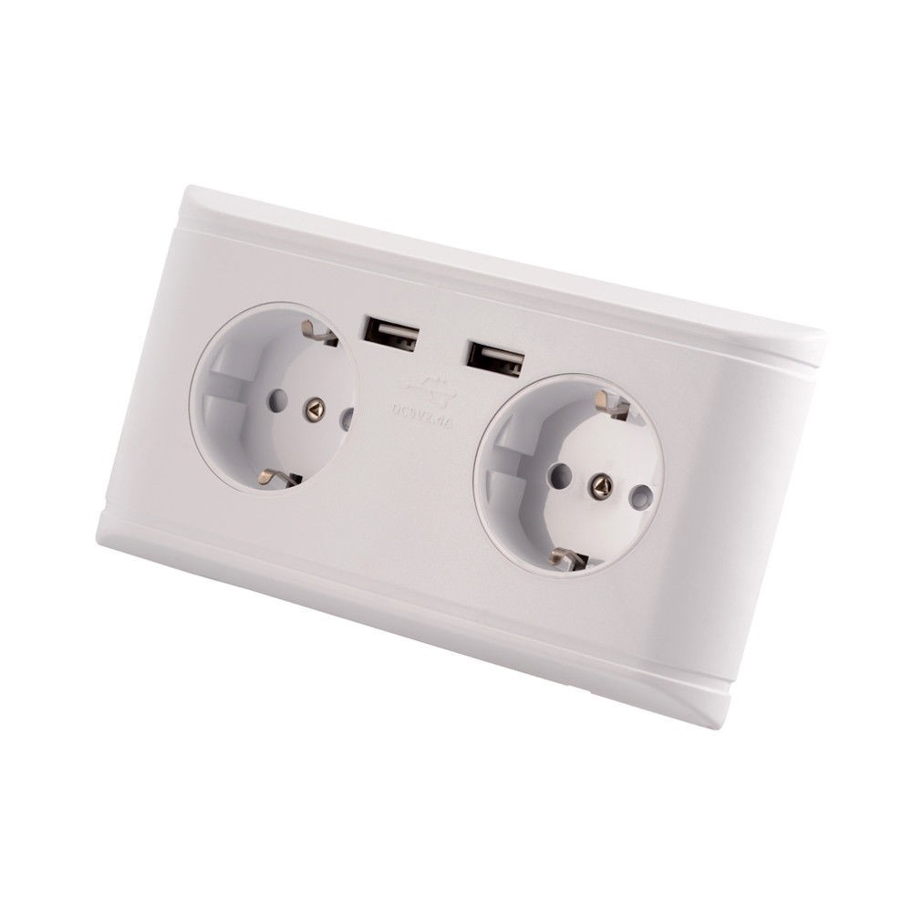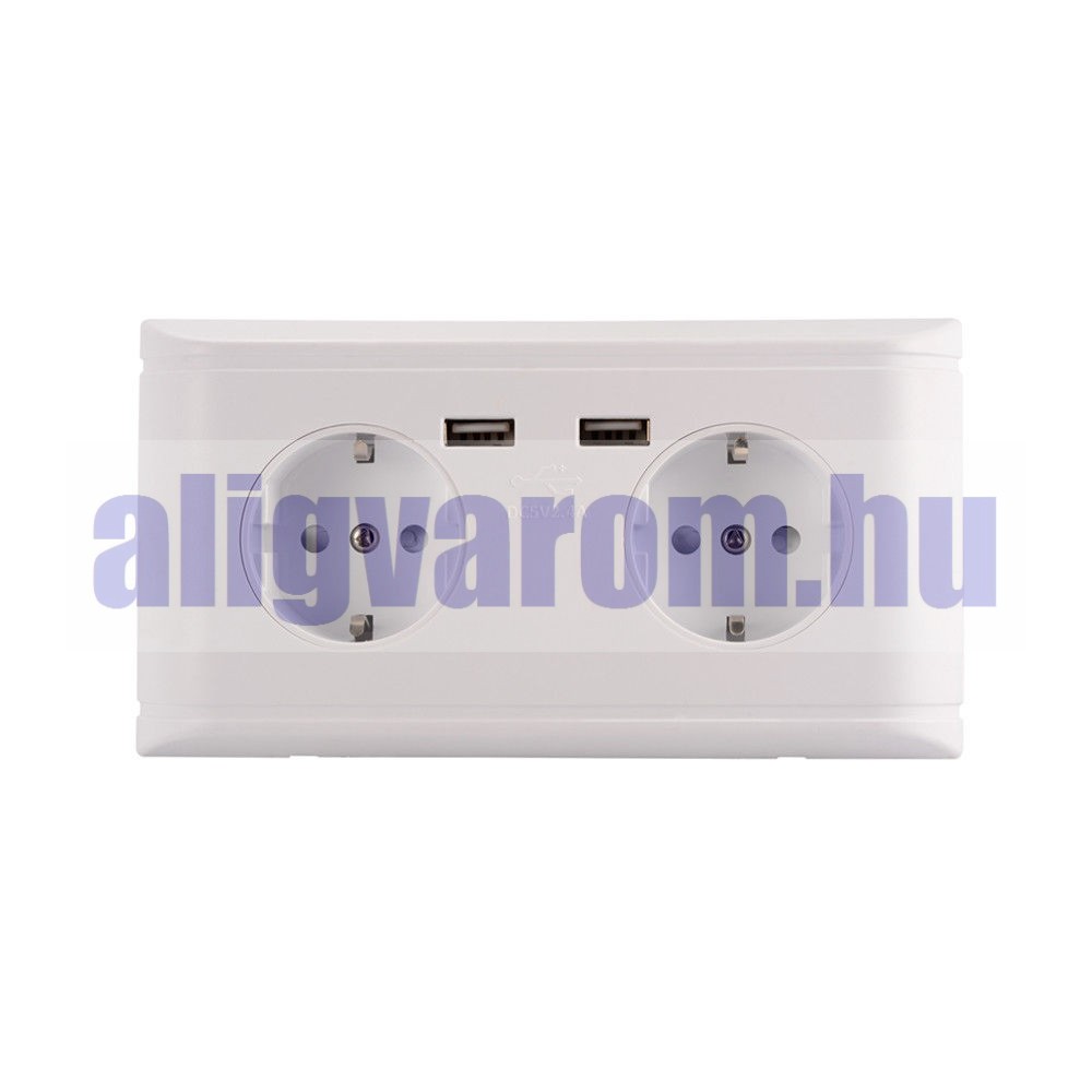 Hálózati dupla konnektor 2 USB aljzattal Süllyesztett USB aljzatos fehér hálózati csatlakozó