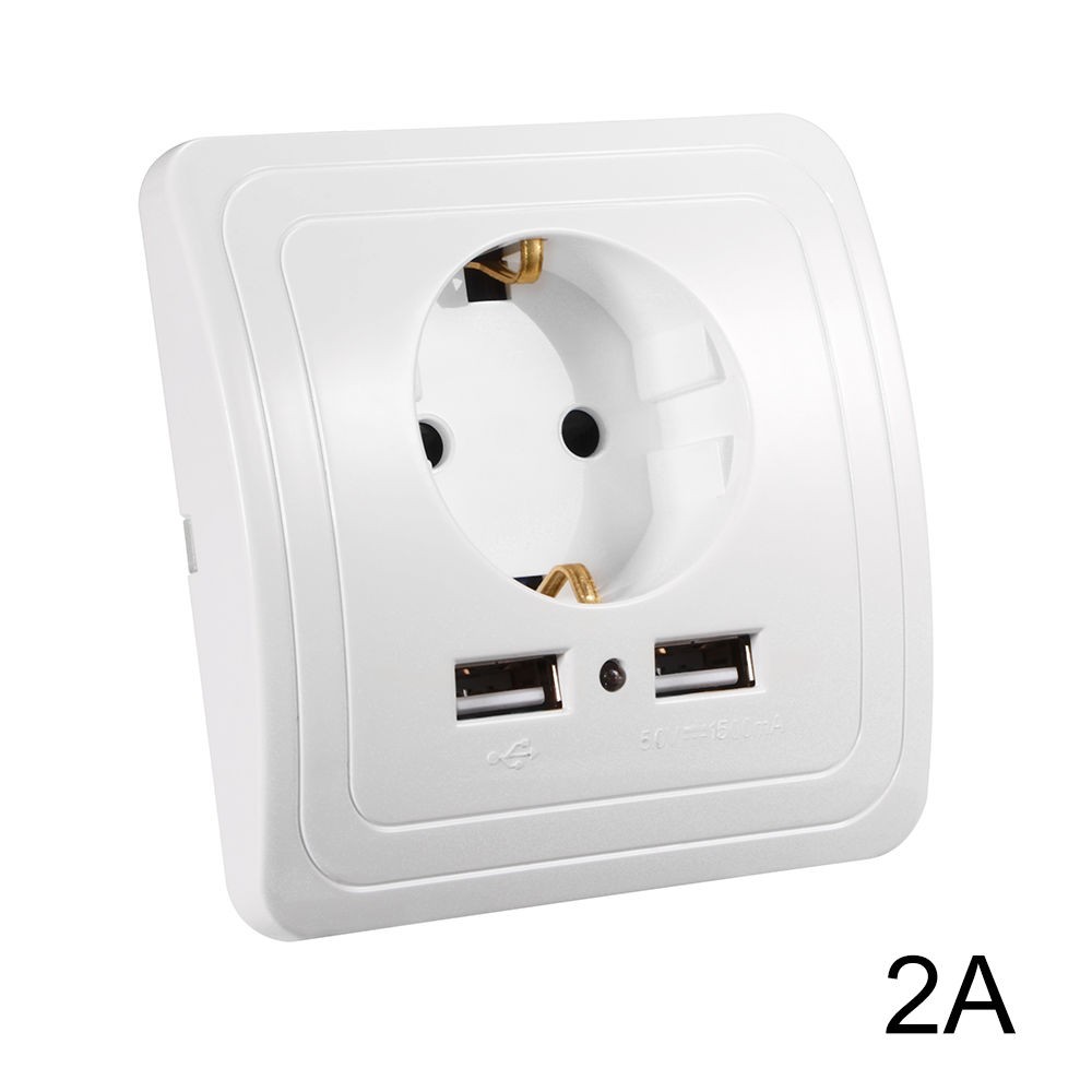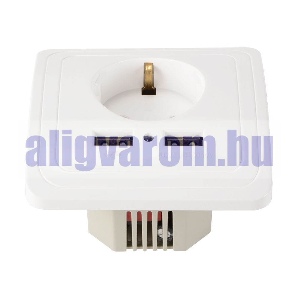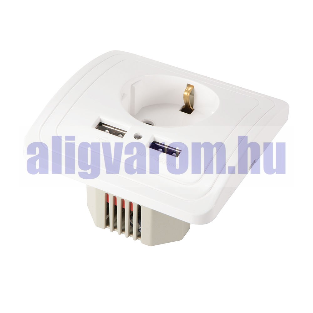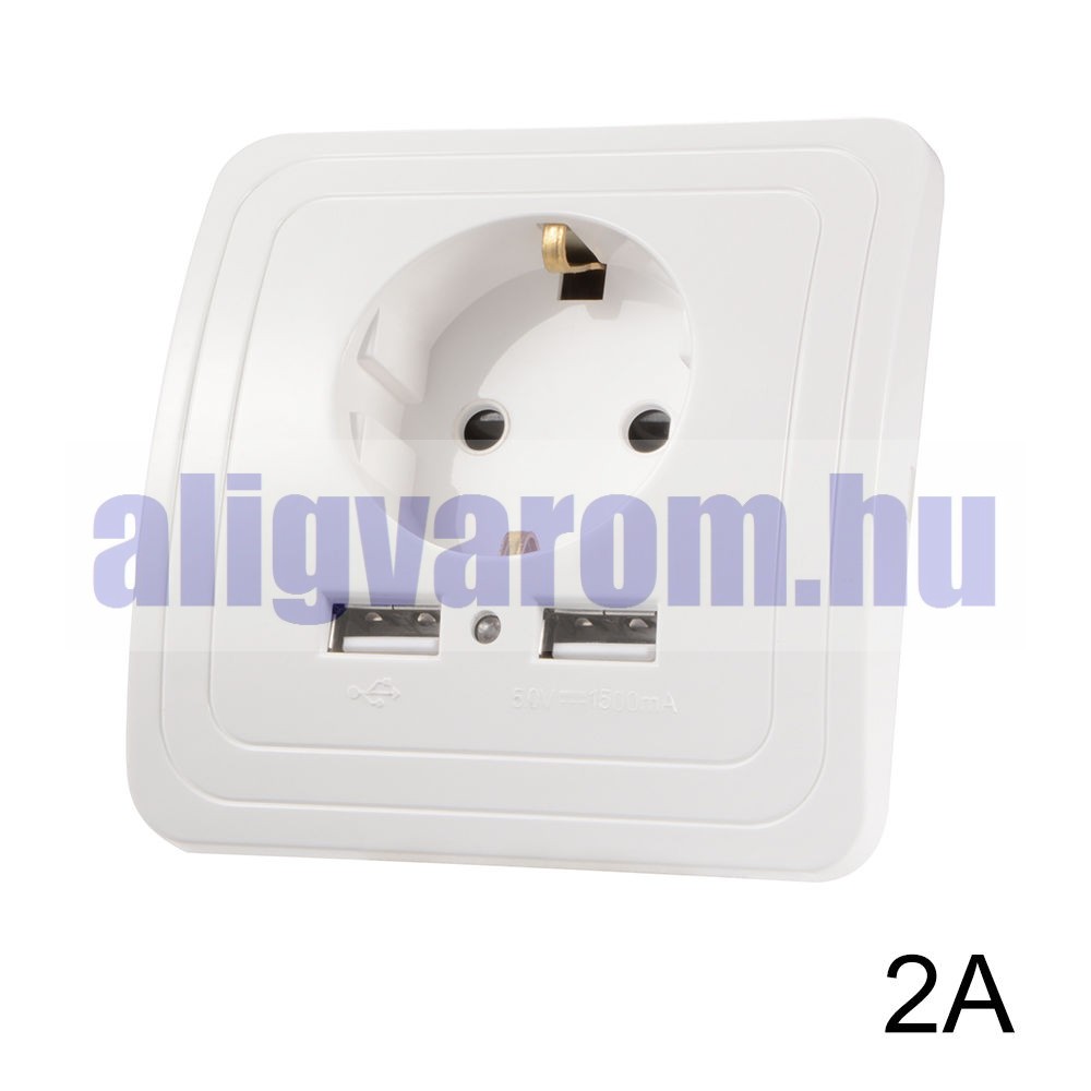 Hálózati konnektor 2 USB aljzattal Süllyesztett USB aljzatos fehér hálózati csatlakozó 230V