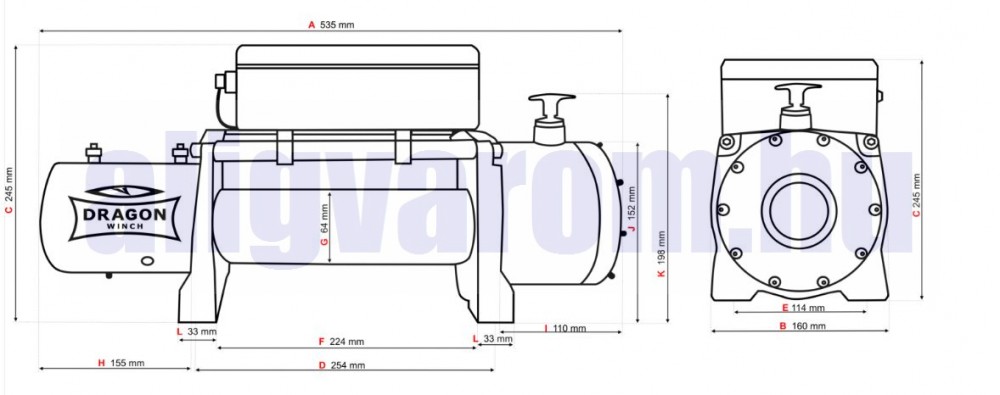 Off-Road autókra és egyéb terepjáróra alkalmas nagyteherbírású egyenáramú csörlő.