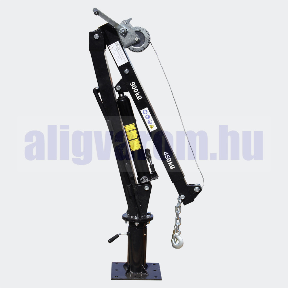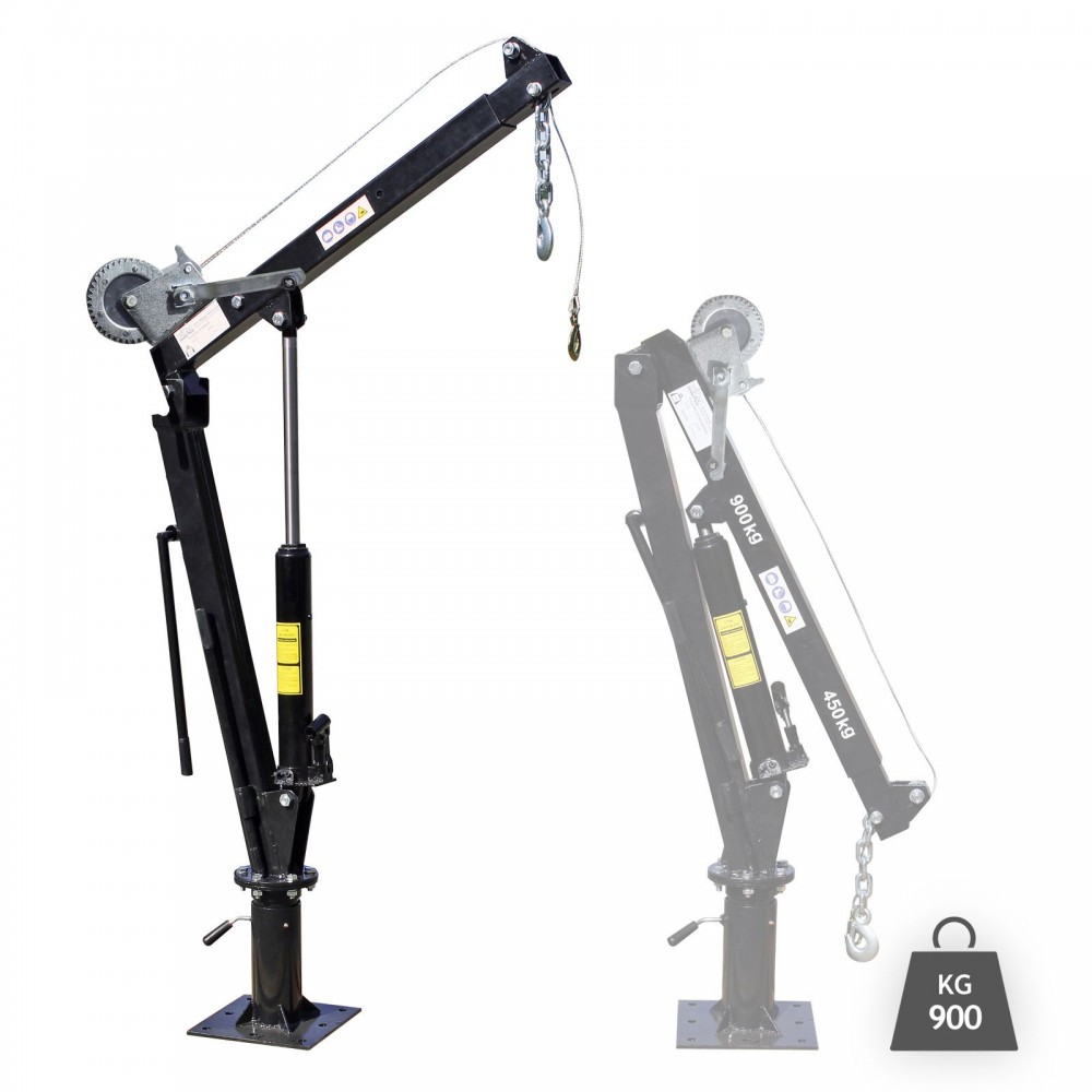 Emelődaru teherbírás tehergépkocsira szerelhető daru 900 kg teherbírással 360°-ban forgatható csörlővel és állvánnyal, összecsukható