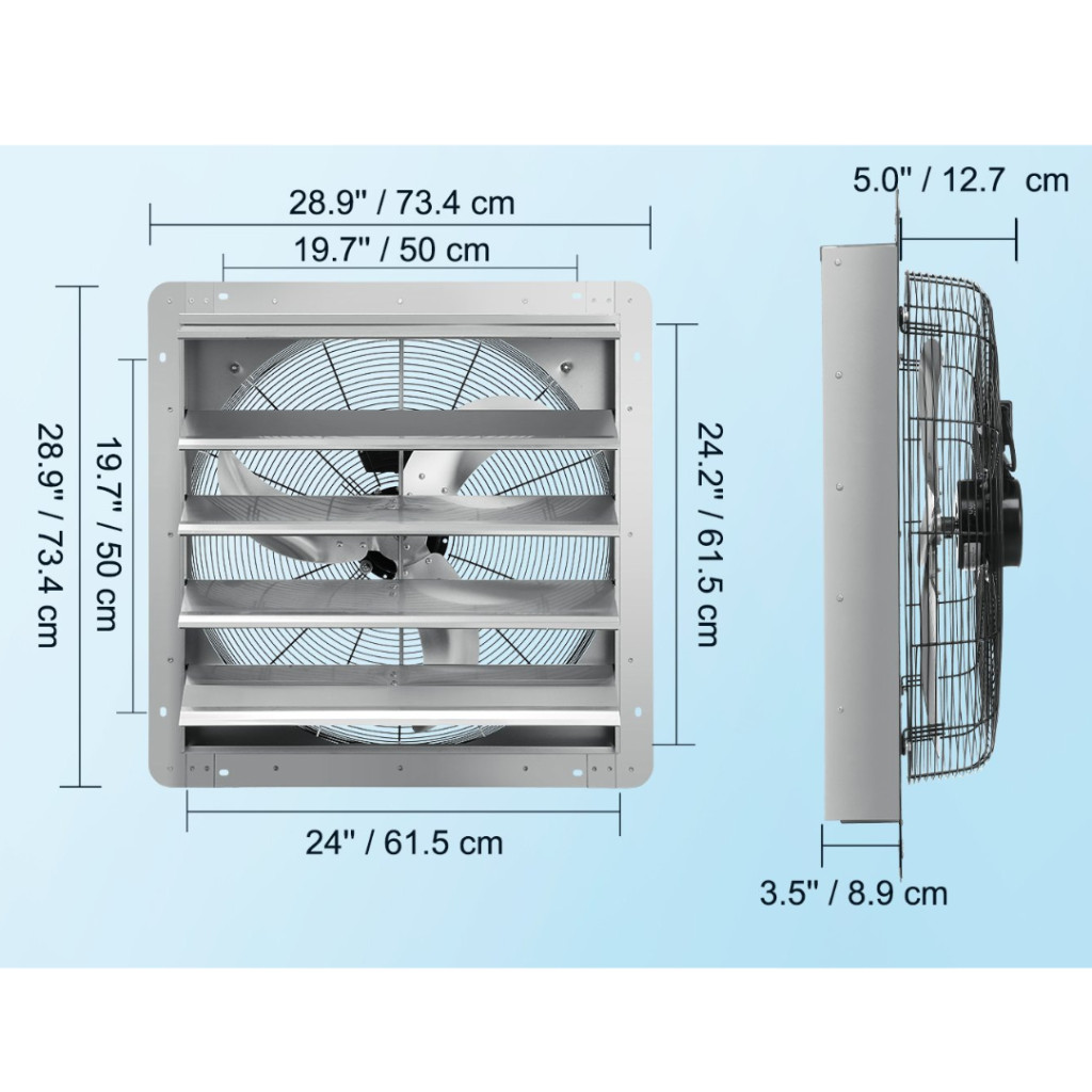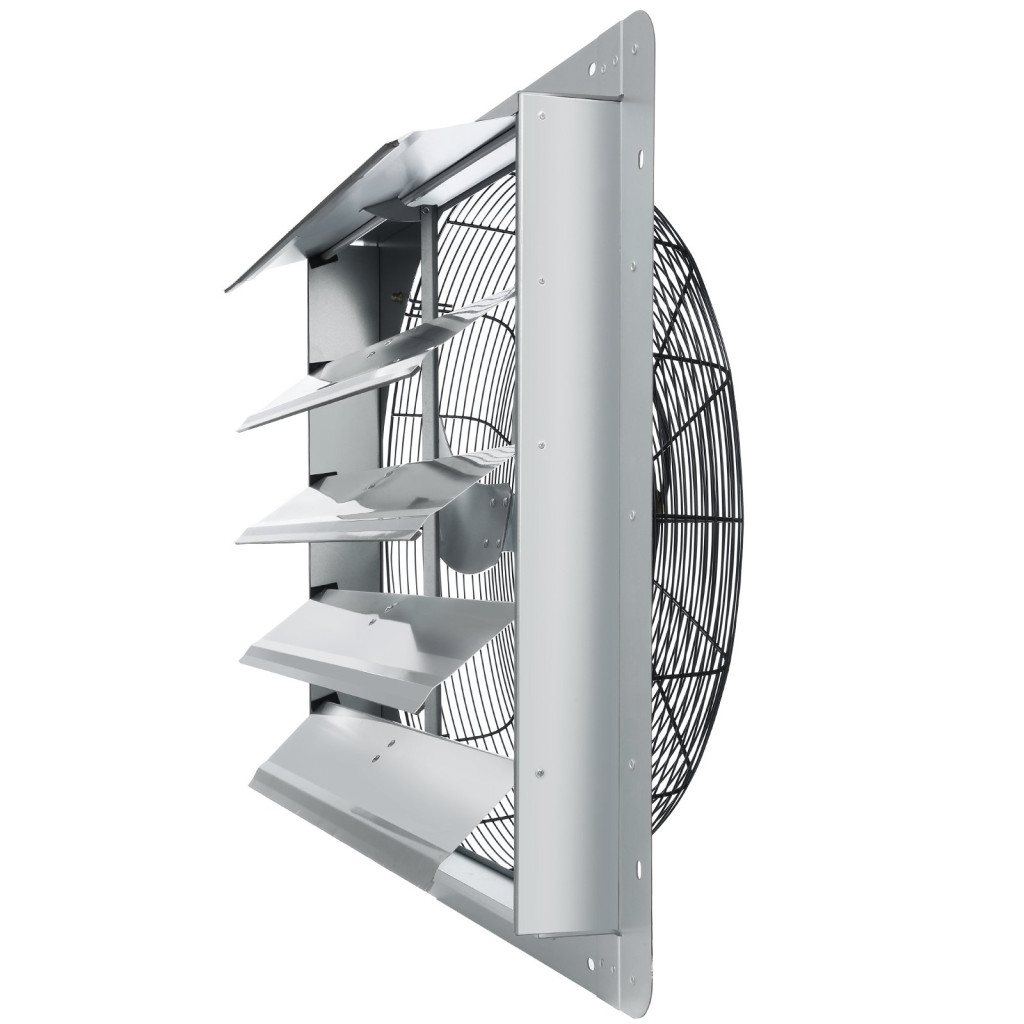 Nagyteljesítményű ipari fali elszívó ventilátor 2892 CFM légszállítással – 610 mm átmérő, teljesen fémből, 115 W-os motorral, automatikus lamellazárással, csendes működéssel