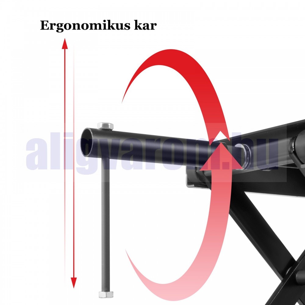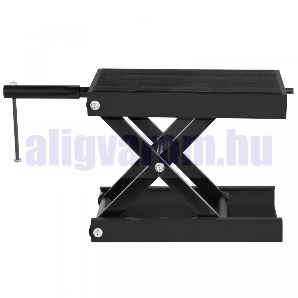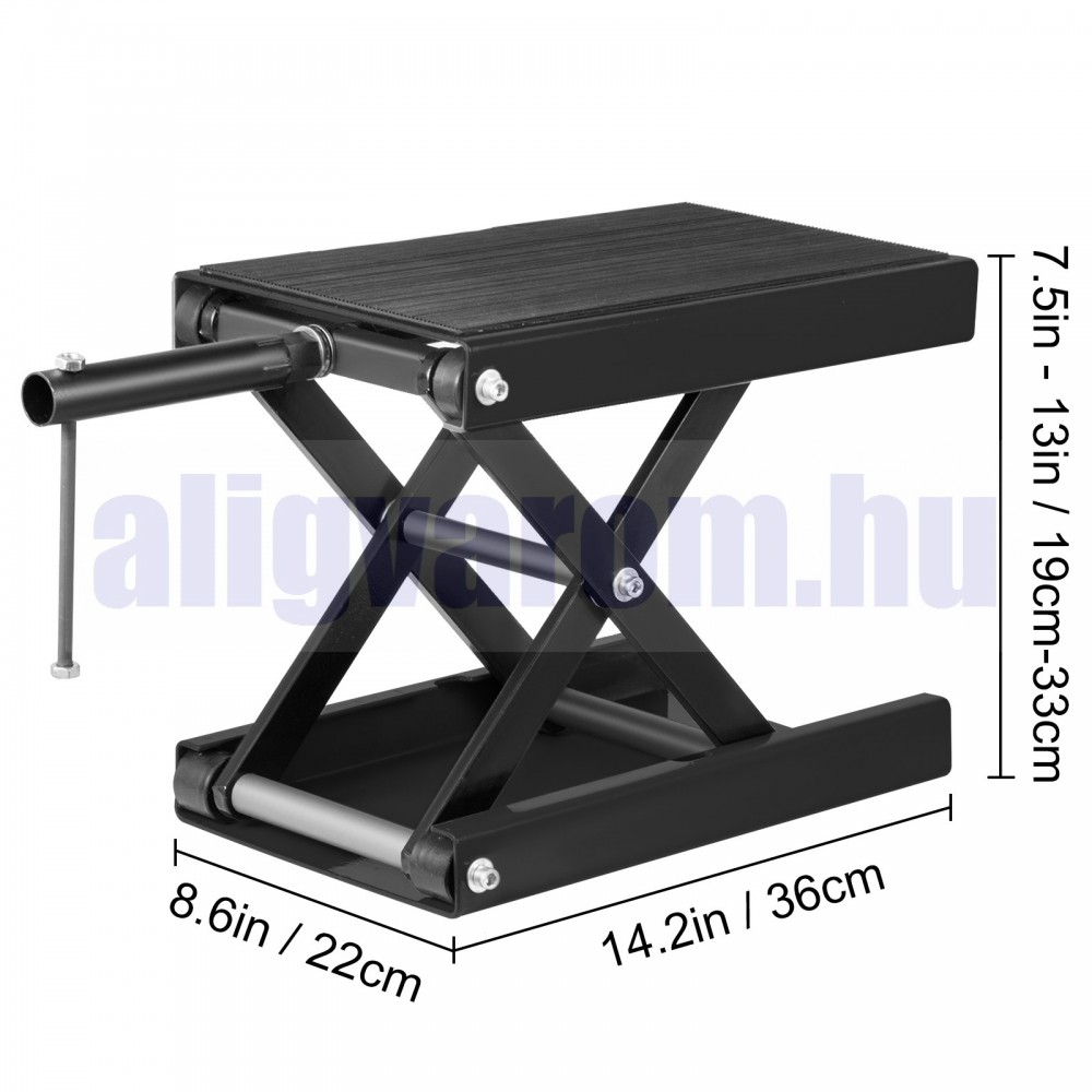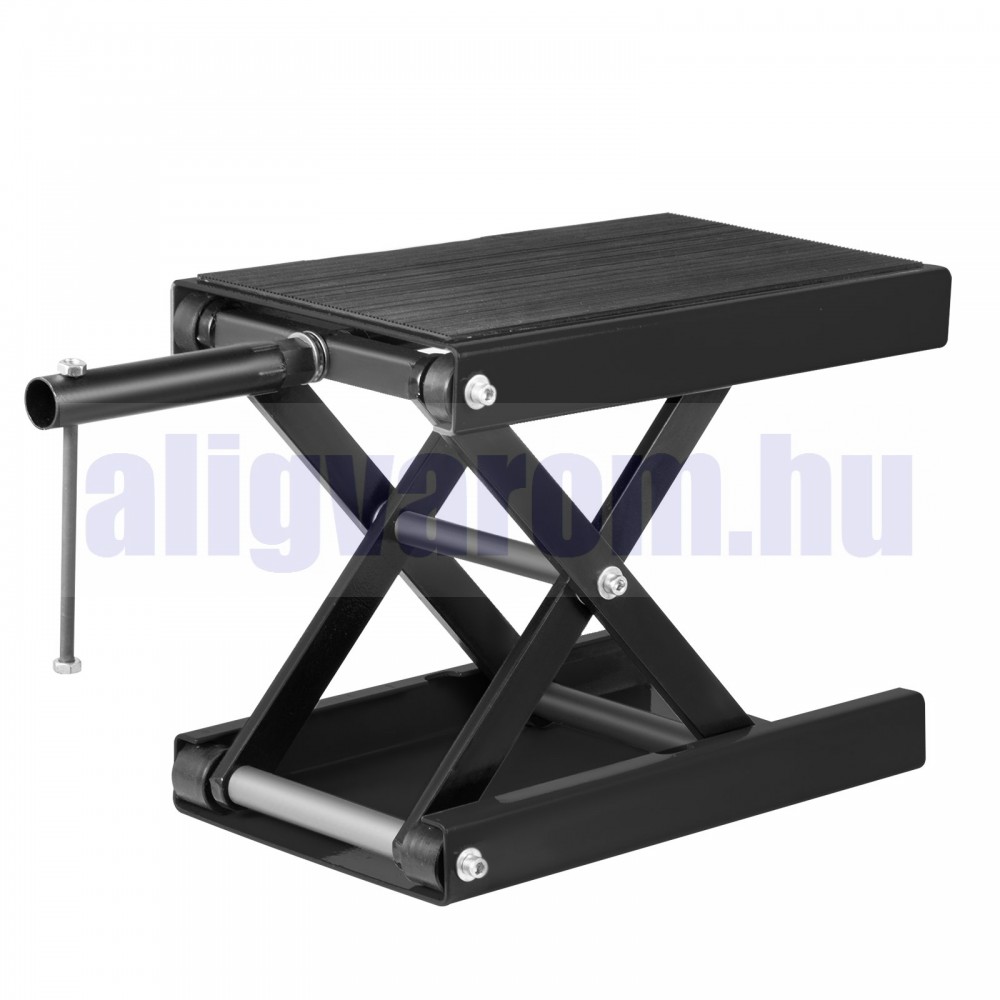 A motorkerékpár emelőtargonca kurblija mozgatható, így bármilyen magasságban beállítható. A kurbli beállításával az állvány emelése vagy süllyesztése gyerekjáték. A motorkerékpár emelőállvány nagyszerű segédeszköz a kerékpár napi karbantartásához és elengedhetetlen kellék a garázsban.