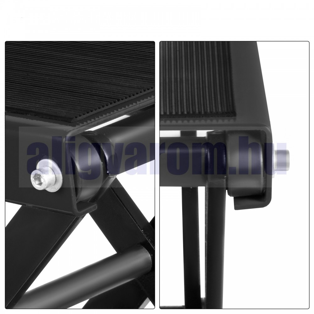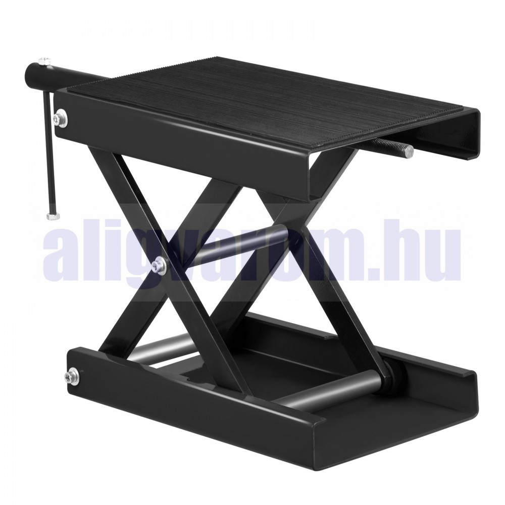A nagy teherbírású acélból készült motorkerékpár-emelő masszív szerkezettel rendelkezik, amely a legtöbb motorkerékpár befogadására alkalmas. A kivitel fekete színű porszórt bevonatú, olaj- és porálló, könnyen tisztítható.