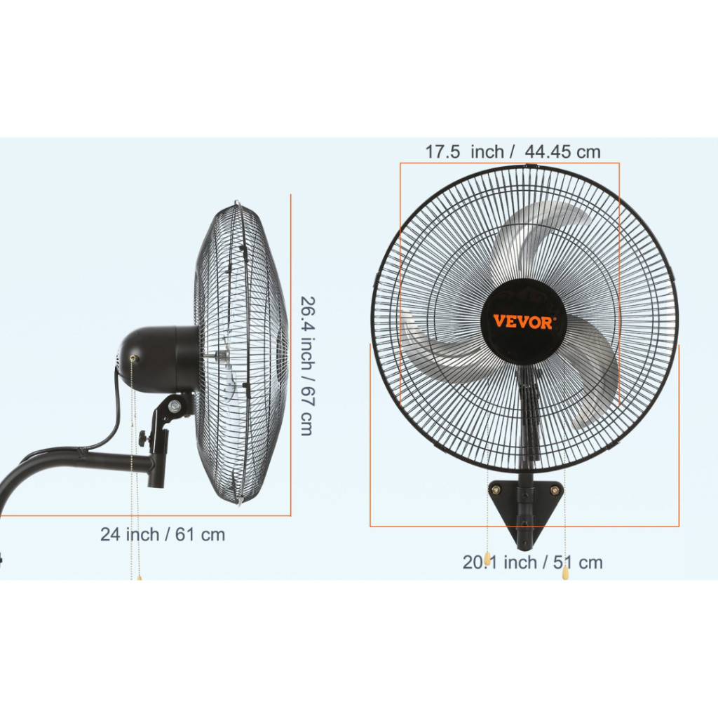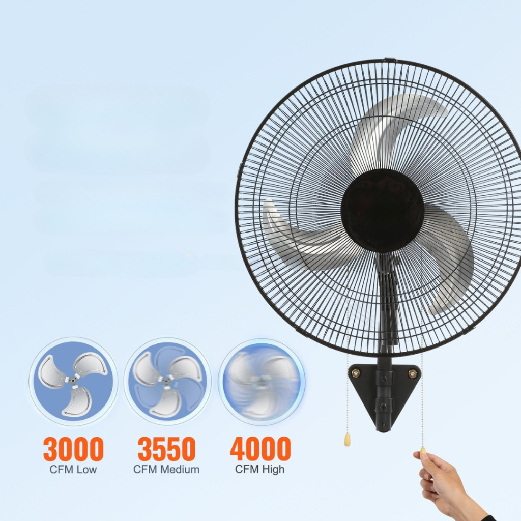 Ipari fali pára ventilátor 44,45 cm lapátátmérővel – 4000 CFM légszállítás, 3 fokozat, 73 W teljesítmény, 90°-os oszcilláció, alacsony zajszint, fémházas kivitel kültéri és beltéri használatra