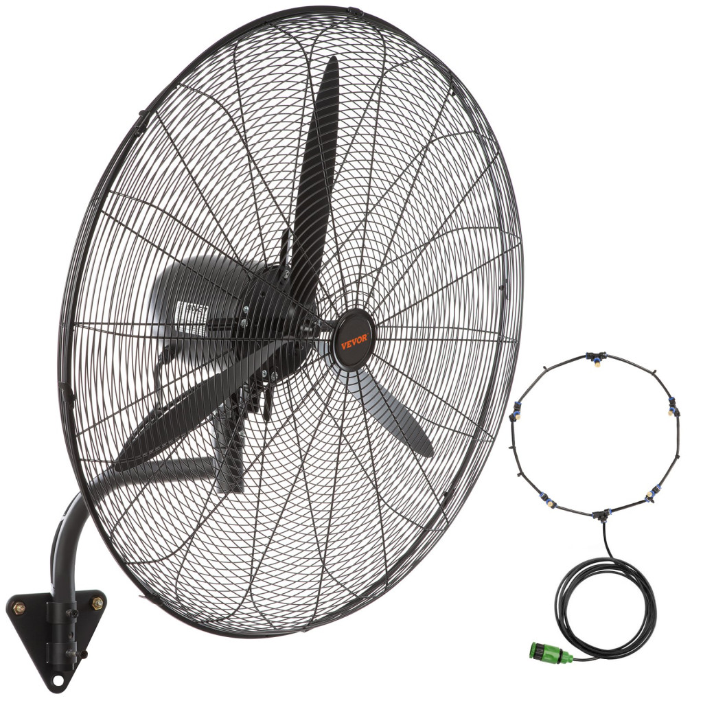 Ipari fali pára permetező ventilátor 74,9 cm átmérővel – 9500 CFM légszállítás, 3 sebességfokozat, IP44 vízálló kivitel, oszcilláló