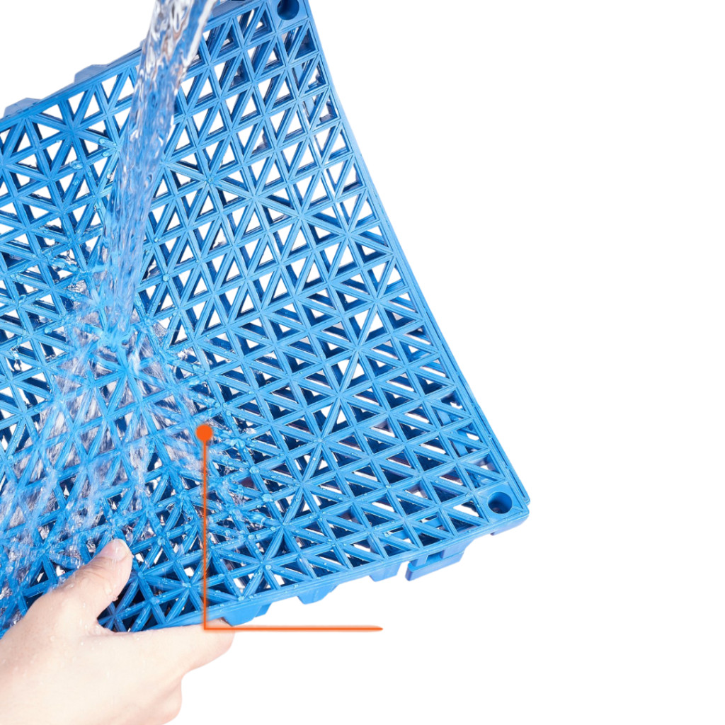 A friss, modern megjelenést keresők számára ez az 50 darabos kék vízelvezető PVC padlólapkészlet tökéletes választás. A 30 x 30 cm méretű, 15 mm magas tartótüskékkel rendelkező elemek gyorsan és hatékonyan vezetik el a vizet, ezáltal csúszásmentes, higiénikus környezetet biztosítanak vizes helyiségekben, például fürdőszobákban, mellékhelyiségekben vagy medencepartokon.