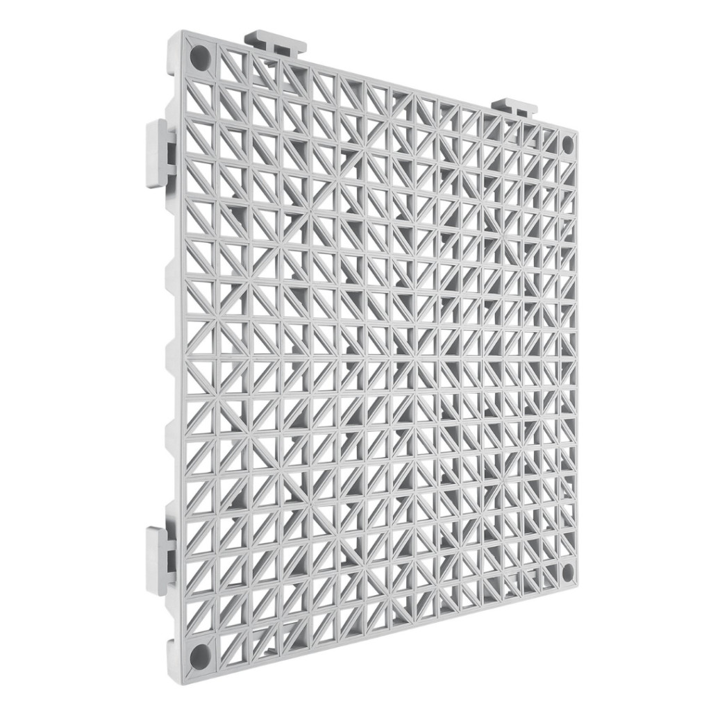 A termék megerősített PVC-ből készül, amely kiválóan ötvözi a puhaságot és a szerkezeti szilárdságot. Ellenáll a deformációnak, tartósan megtartja formáját, így hosszú távon is megbízható burkolati megoldást jelent. A precízen kialakított vízelvezető nyílások stabil illeszkedést biztosítanak, így a lapok nem mozdulnak el a helyükről használat közben sem.