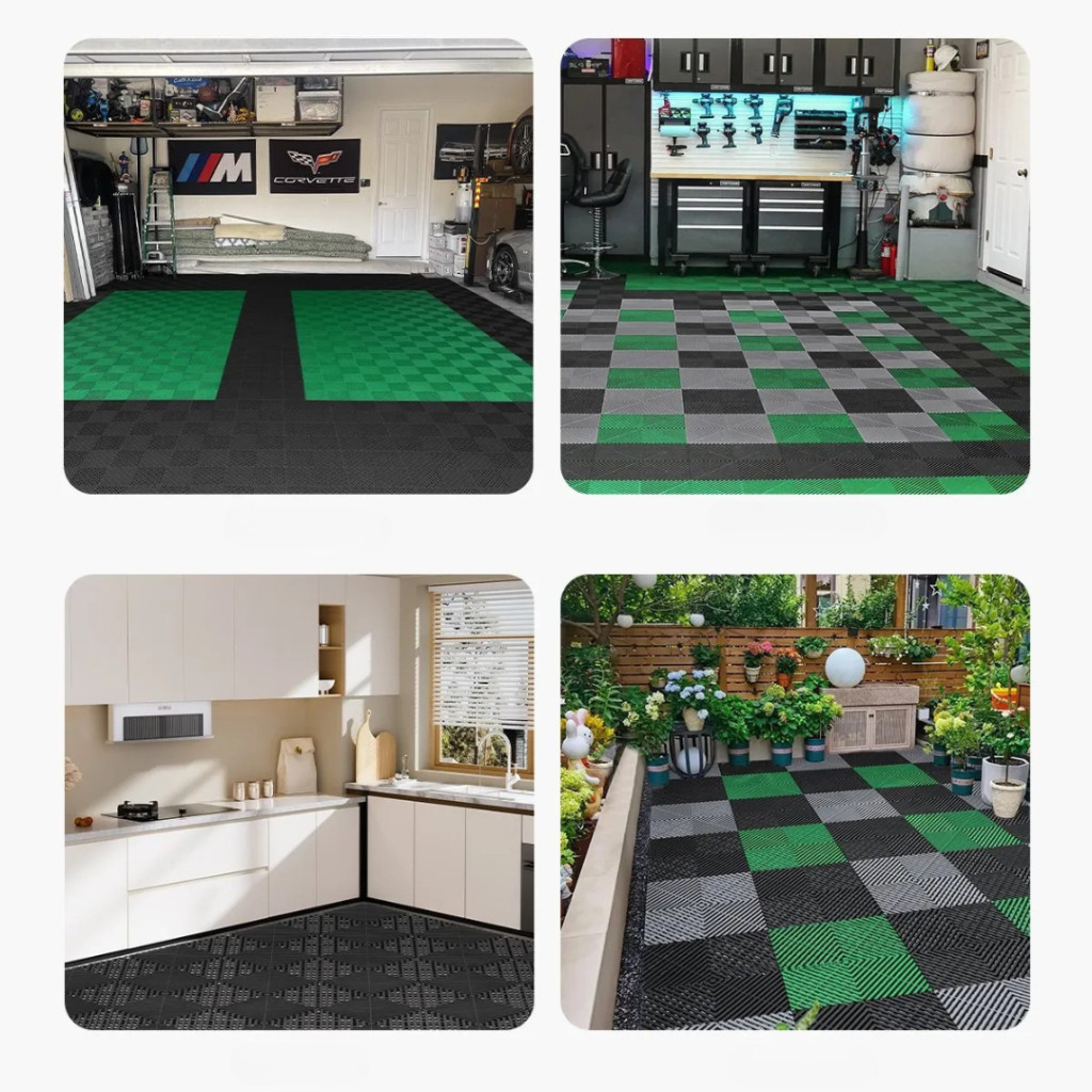 A lapok különböző színekkel kombinálhatók, így egyedi DIY minták alakíthatók ki. Ez nemcsak praktikus, hanem esztétikus megoldás is, amely feldobja garázsa vagy műhelye megjelenését.