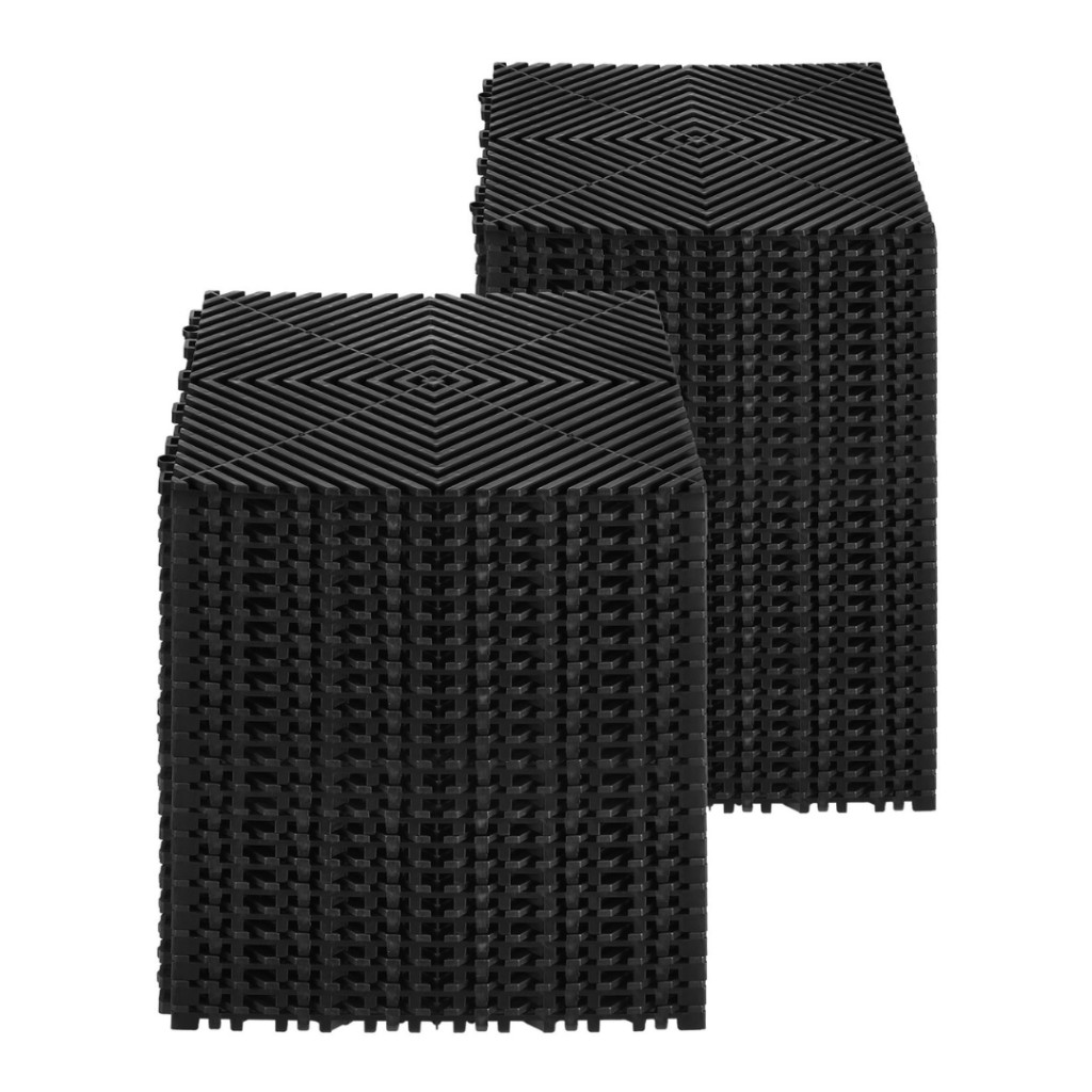 Vízelvezető padlólap 40 db fekete garázspadló 31x31 cm moduláris, PP padlóburkolat összepattintható kivitel