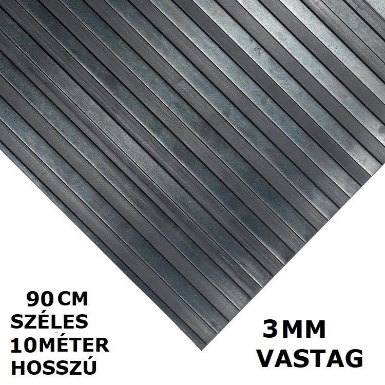 SBR 10 méter 3x900 mm Bordás gumiszőnyeg széles csíkozású 90 cm széles 10 méter hosszú 3 mm vastag tekercs gumi védőborítás