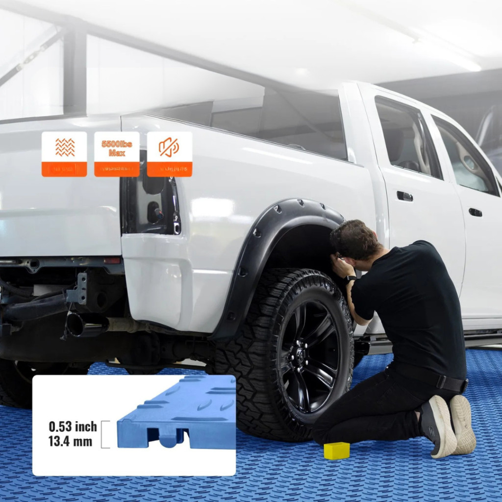 A speciális kétoldalas textúra biztosítja, hogy a lapok stabilak maradjanak még nedves, olajos vagy poros környezetben is. Ez különösen fontos garázsokban, műhelyekben és ipari környezetben, ahol gyakran kiömlő folyadékok nehezíthetik a munkát.