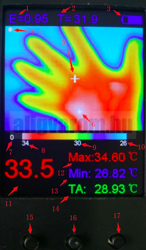 Hőkamera, mini infra kamera. Érintésmentes hőmérséklet mérés, LCD kijelsővel
