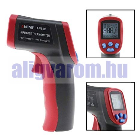 Infravörös hőmérő lézerrel, memóriával. Érintésmentes hőmérséklet mérés.