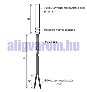 PT100 hőmérséklet érzékelő PVC kábellel.