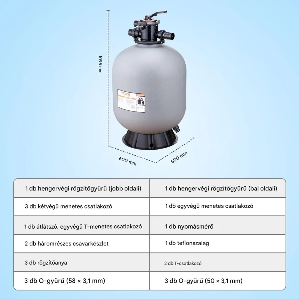 Szűrőtartály átmérő: 609,6 mm