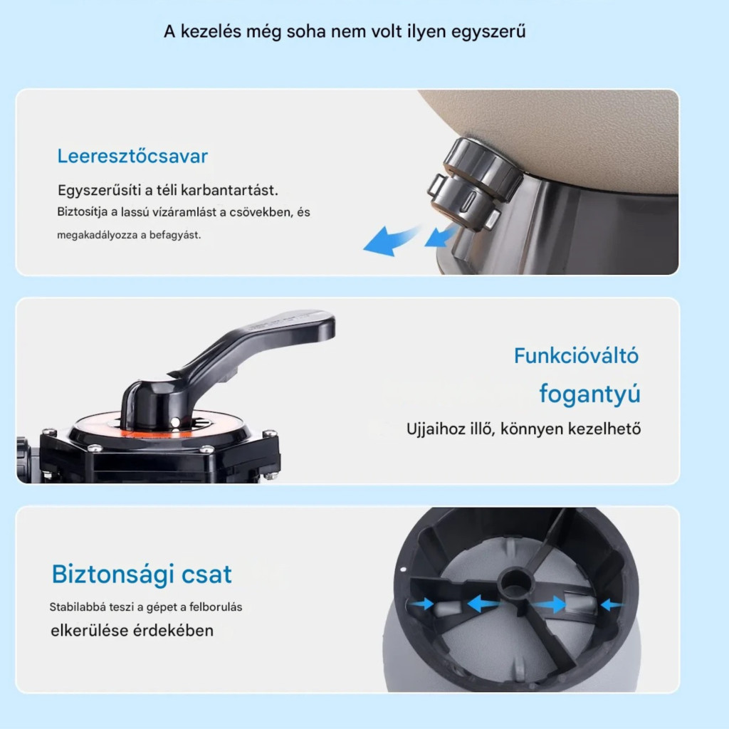 A medence homokszűrő fejlett szűrési technológiával működik: