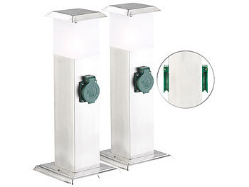 Kerti konnektor dupla aljzattal világítással 2 darabos szett rozsdamentes acél kültéri elosztó lámpával ezüst áramelosztó