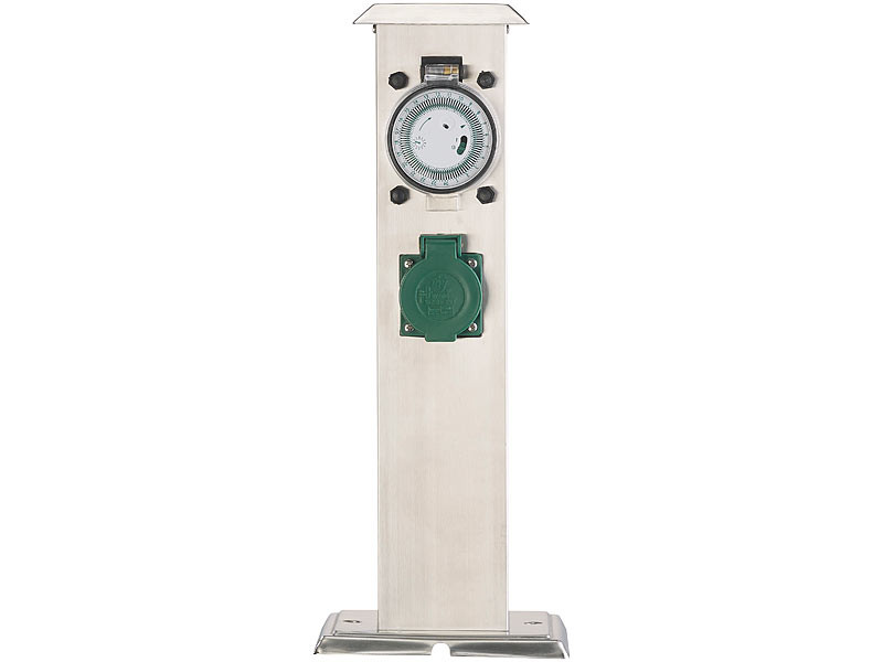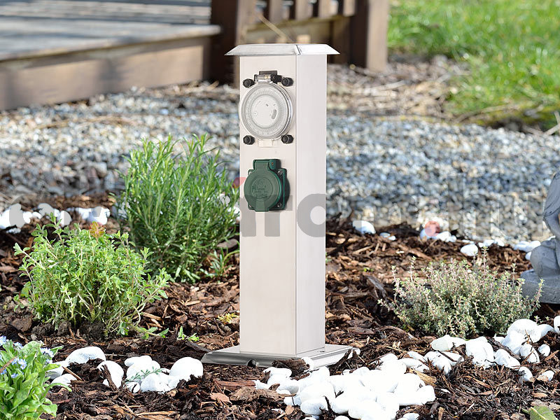 Minden egyes aljzat és az időzítő önzáró fedéllel rendelkezik. A gumitömítések gondoskodnak arról is, hogy a fröccsenő víz ne jusson be a konnektorba. Az elosztószlop stabil és időjárásálló, így nem kell leszerelnie, még akkor sem, ha zivatar készülődik.