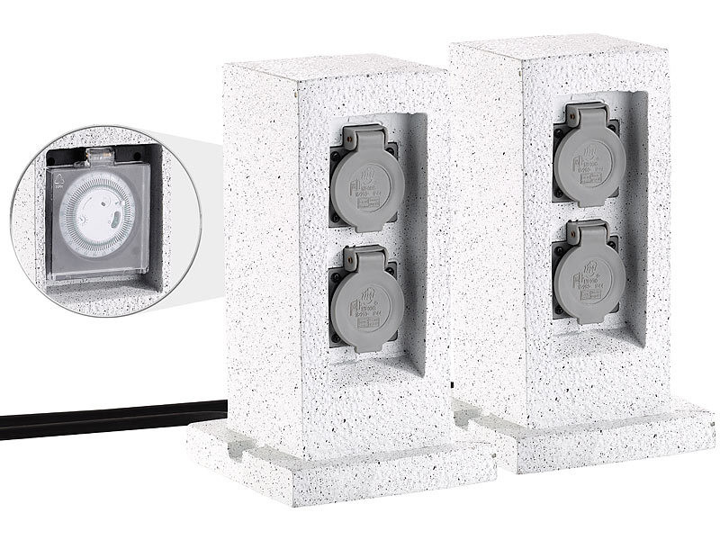 Kerti konnektor dupla aljzattal 2 darabos szett kő hatású kültéri elosztó fedőlappal áramelosztó IP44