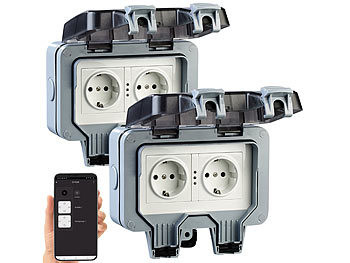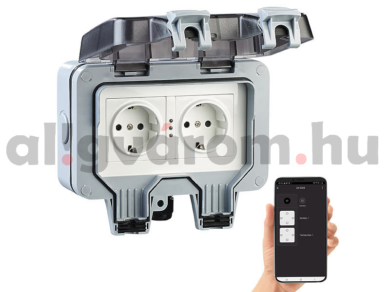 Okos kerti konnektor 2 db intelligens Wifi kültéri dupla aljzat, smart elosztó fogyasztásmérővel, applikációval IP44