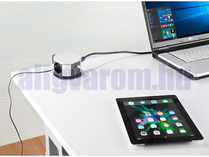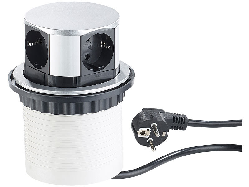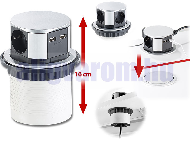 Vessen véget az összegabalyodott hosszabbítókábeleknek! Ideális konnektor az irodába, a konyhába de akár a műhelybe is! Az íróasztalba, munkalapba vagy munkapadba süllyesztve az elosztó nem foglal helyet. Elég egy könnyed mozdulat és máris kinyithatja, ha szüksége van konnektorra, és ugyanilyen könnyen lesüllyeszthető. A teljesen visszahúzható, 3 aljzattal ellátott asztali konnektor láthatatlan, de mindig ott van, amikor áramra van szüksége.