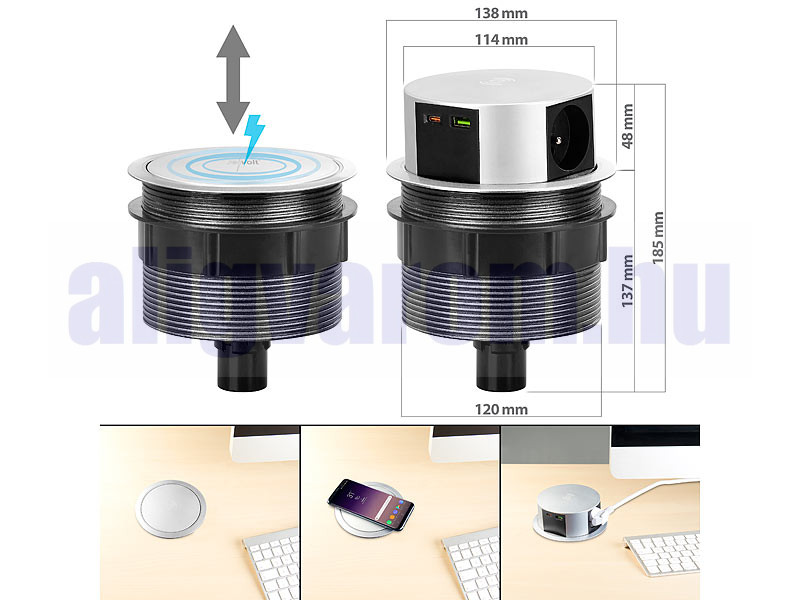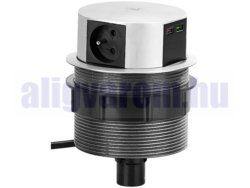 Vessen véget az összegabalyodott hosszabbítókábeleknek! Ideális konnektor az irodába, a konyhába de akár a műhelybe is! Az íróasztalba, munkalapba vagy munkapadba süllyesztve az elosztó nem foglal helyet. Elég egy könnyed mozdulat és máris kinyithatja, ha szüksége van konnektorra, és ugyanilyen könnyen lesüllyeszthető. A teljesen visszahúzható, 3 aljzattal ellátott asztali konnektor láthatatlan, de mindig ott van, amikor áramra van szüksége.