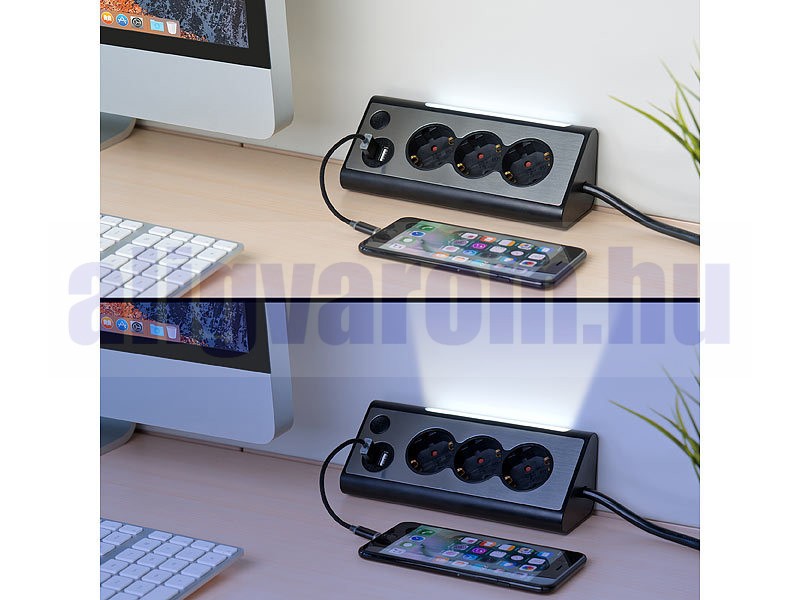 A beépített LED világításnak köszönhetően még a sötétebb sarkokban is jól látható a konnektor és azonnal láthatja, hol lehet még csatlakoztatni egy készüléket. Éjjeli fényként is tökéletes az ágy mellett.