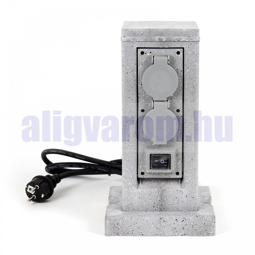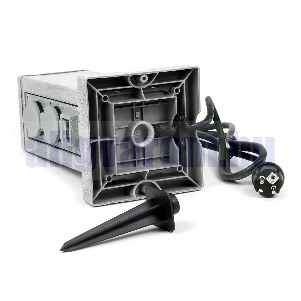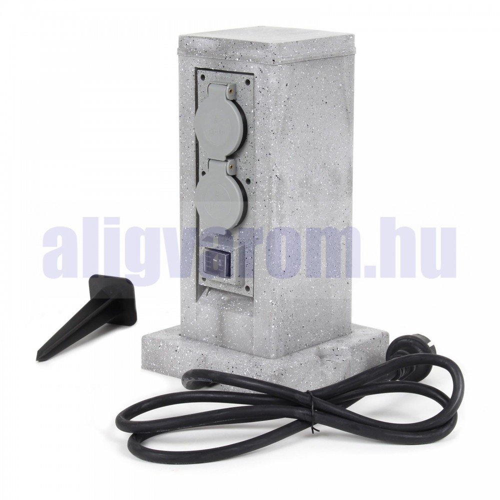 Kerti konnektor 4db aljzattal, gránit hatású elosztó oszlop kültéri konnektor kapcsolóval