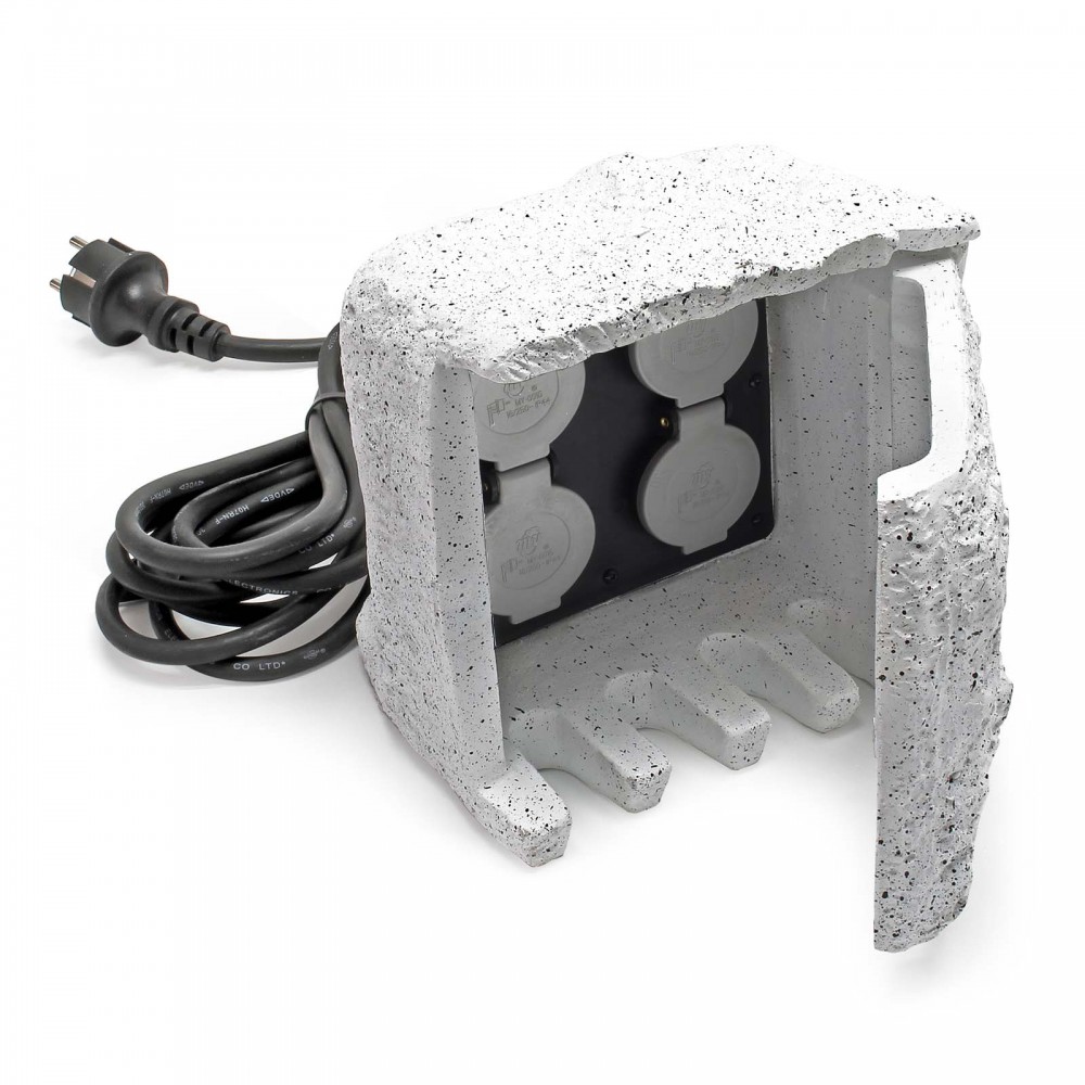 A formás, kő hatású műgyanta ház észrevétlenül illeszkedik a kertbe. Az IP44-es szabványnak köszönhetően ez a kültéri elosztó könnyen ellenáll az esőnek és a víznek. A négy aljzat kissé megemelve és biztonságosan egy mágneses zárral rögzített csuklós ajtó mögött helyezkedik el, amelynek mélyedései lehetővé teszi, hogy a csatlakoztatott eszközök kábelei biztonságosan, rendezetten és feltűnésmentesen kivezethetők legyenek a házból. Ez a kültéri használatra szánt konnektor mechanikus időzítővel is rendelkezik, amely lehetővé teszi, hogy az áramellátást a kertben az Ön igényeihez igazítsa.