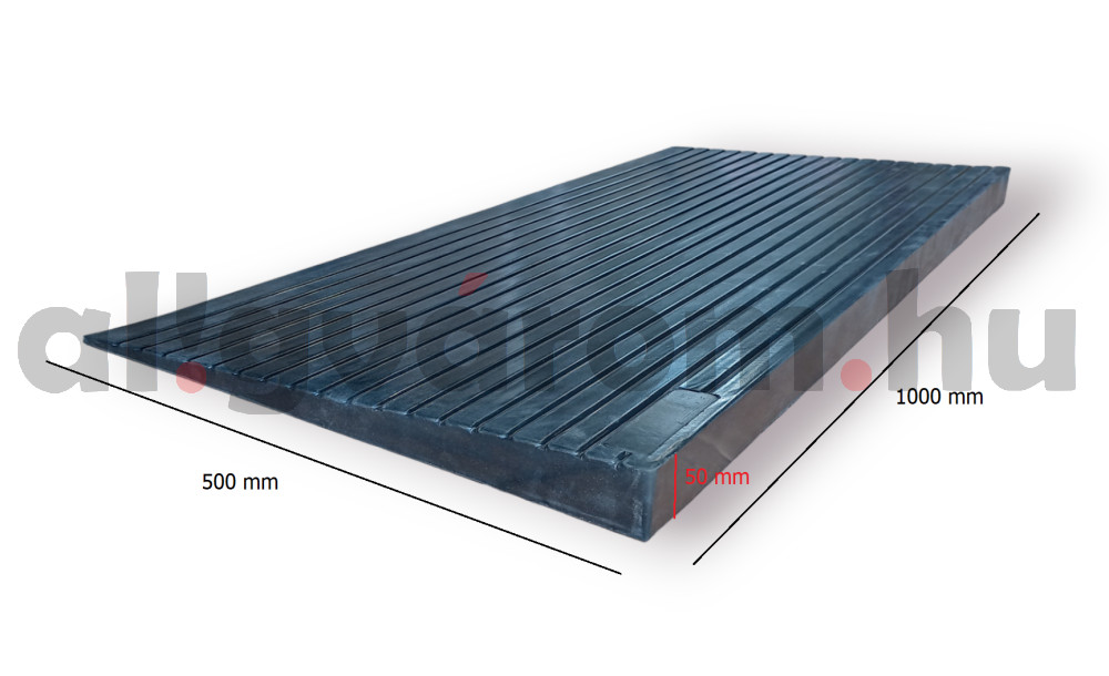 Küszöbáthidaló rámpa 50x500x1000 mm Lefektethető gumi küszöb átvezető, 5 tonna teherbírás