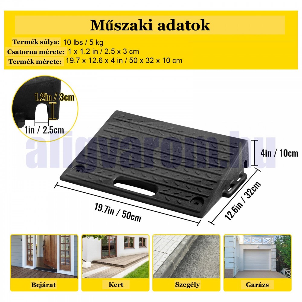 Küszöbrámpa 2 db csúszásmentes gumi küszöbáthidaló 50x32x10 cm 5000 kg teherbírású mozgássérült rámpa