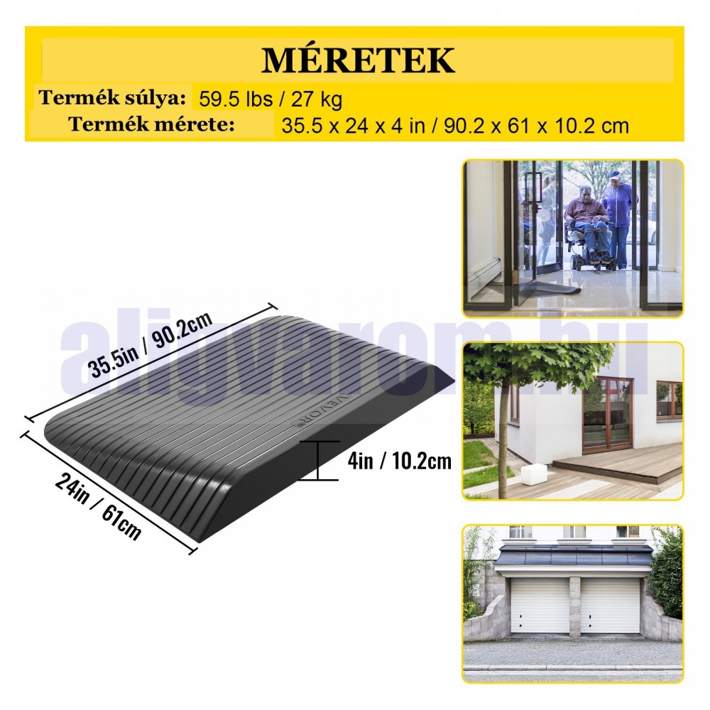 Küszöbrámpa csúszásmentes gumi küszöbáthidaló 90x61x10 cm 1000 kg teherbírású mozgássérült rámpa